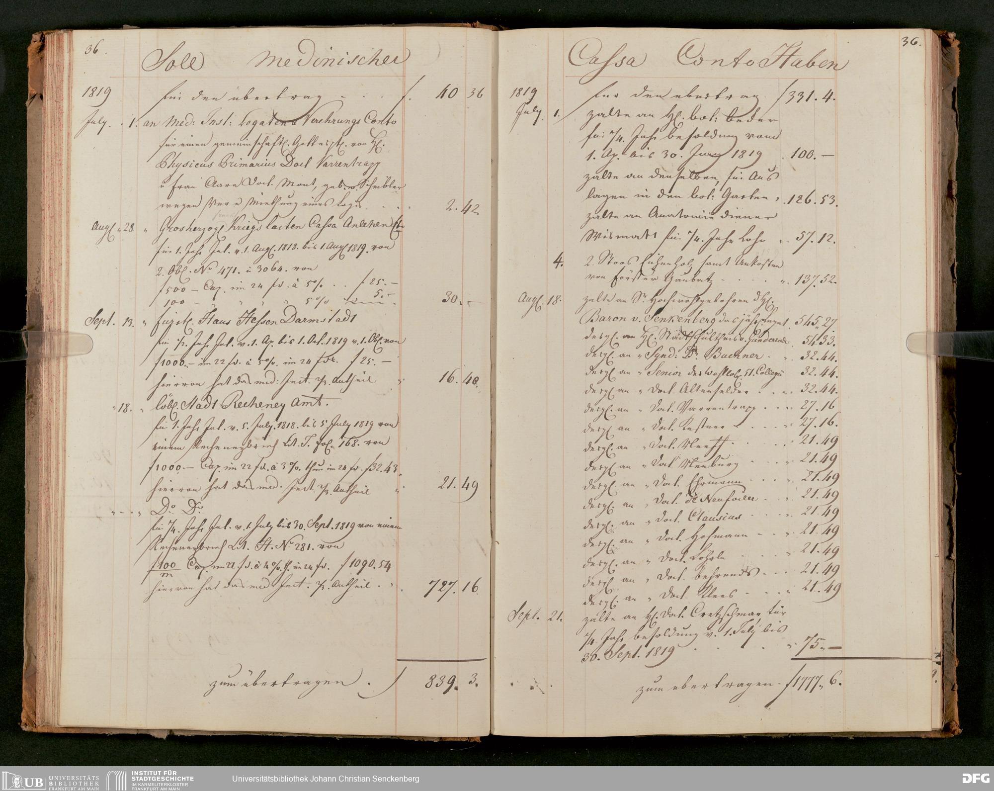 V48 Dr. Senckenbergische Stiftung, 63 - ... Kassenbrouillon des Dr. Senckenbergischen Medizinischen Instituts, Bd. 2