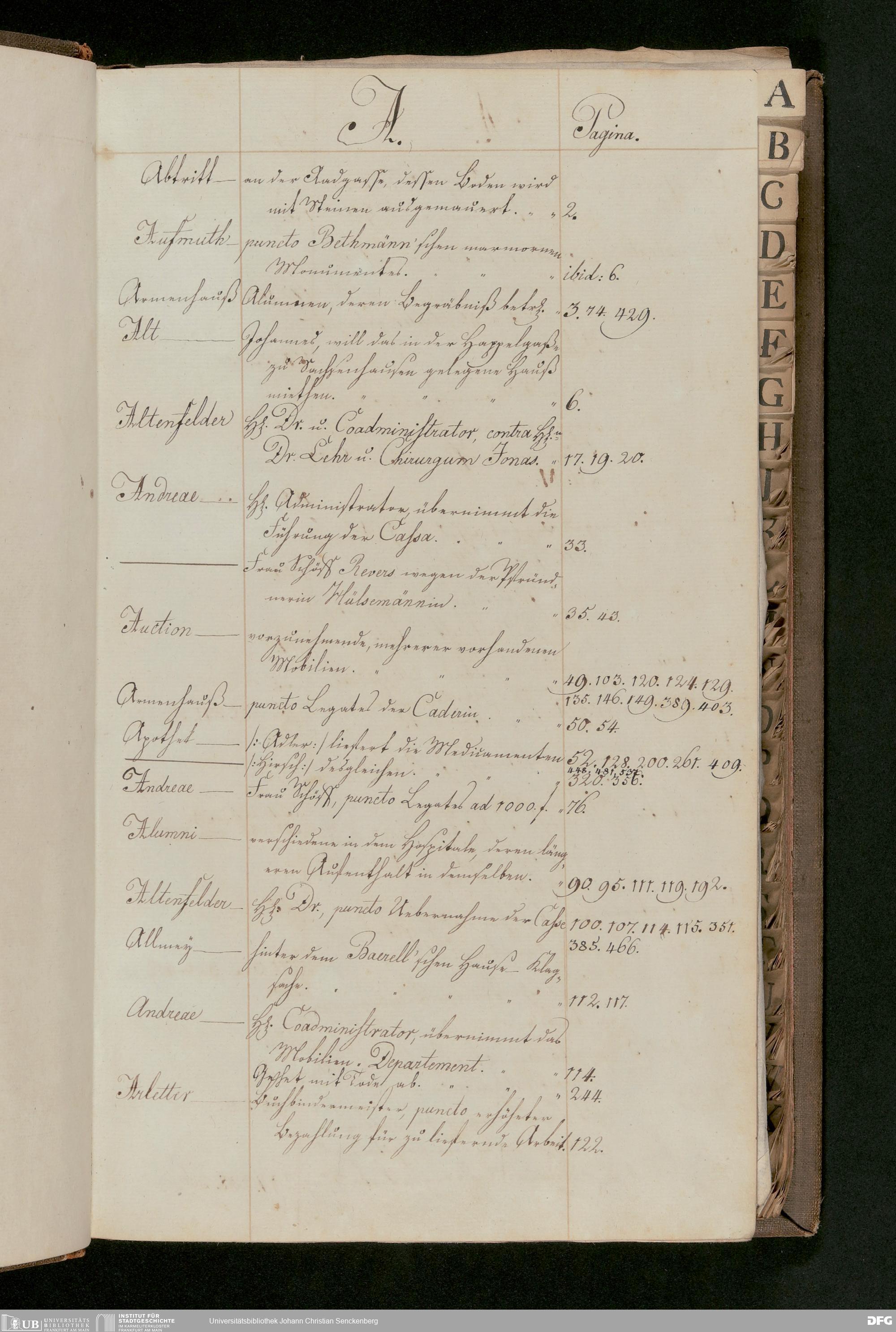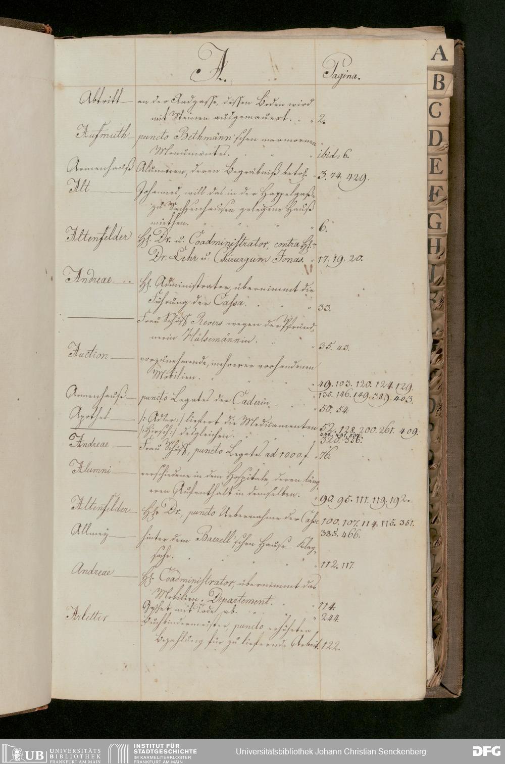 V48 Dr. Senckenbergische Stiftung, 175 - ... Register zum Amtsprotokoll der Dr. Senckenbergischen Stiftung, Teil 2