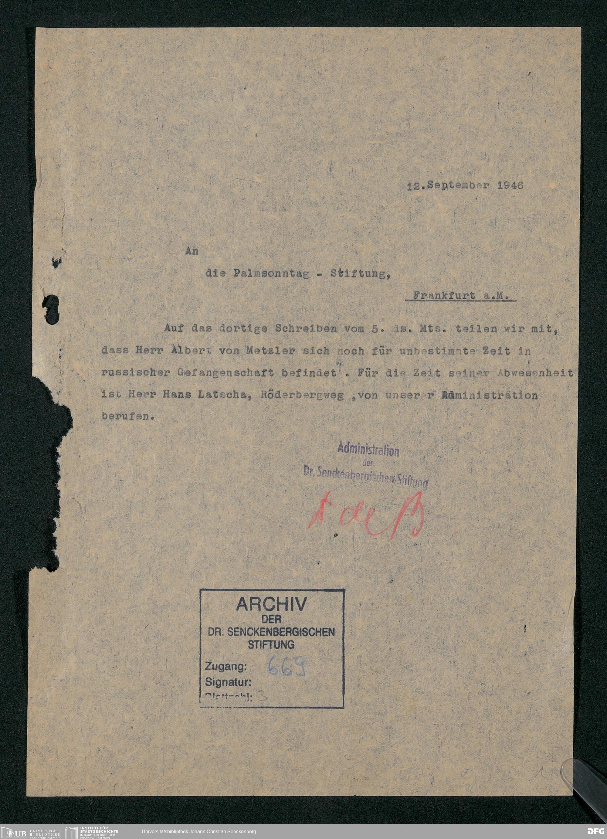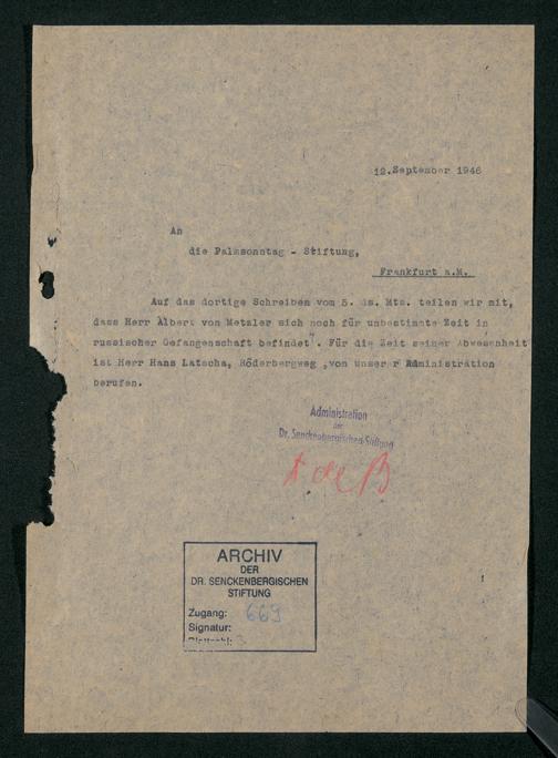 V48 Dr. Senckenbergische Stiftung, 669 - Verwaltungsrat der Palmsonntag-Stiftung