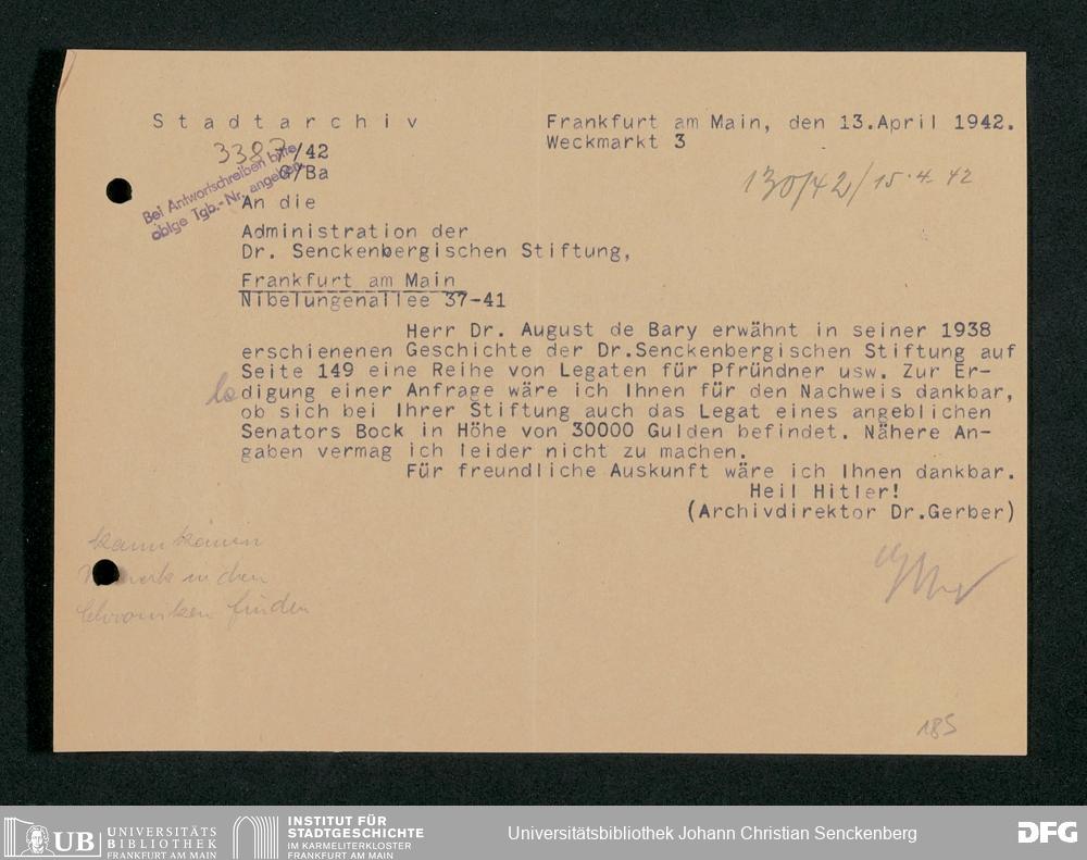 V48 Dr. Senckenbergische Stiftung, 778 - Handakten August de Barys