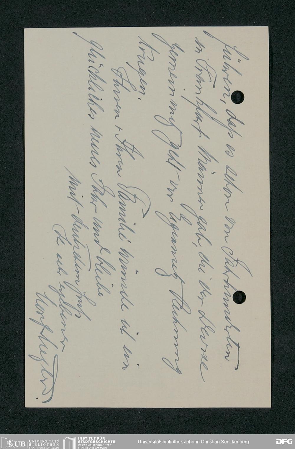 V48 Dr. Senckenbergische Stiftung, 790 - Dankschreiben an die Administration für erhaltene Freiexemplare der von August de Bary verfassten Biografie Johann Christian Senckenbergs