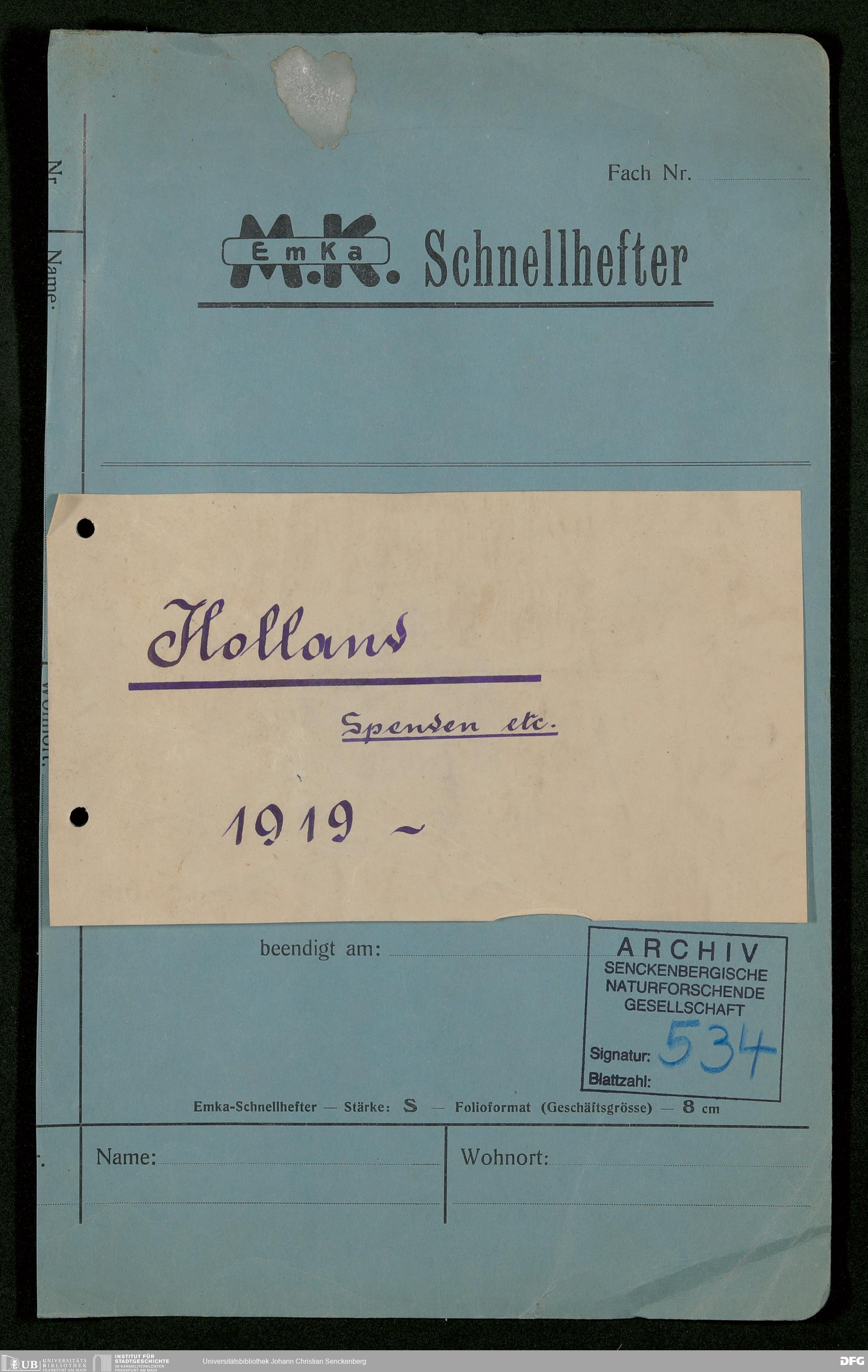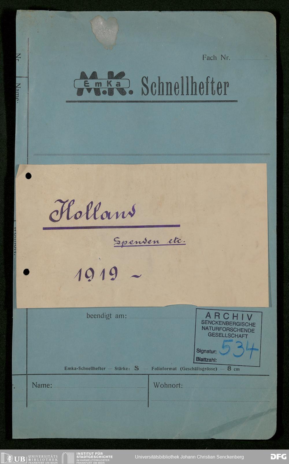 V176 Senckenberg Gesellschaft für Naturforschung, 534 - Mitgliederwerbung in und Geldspenden aus den Niederlanden