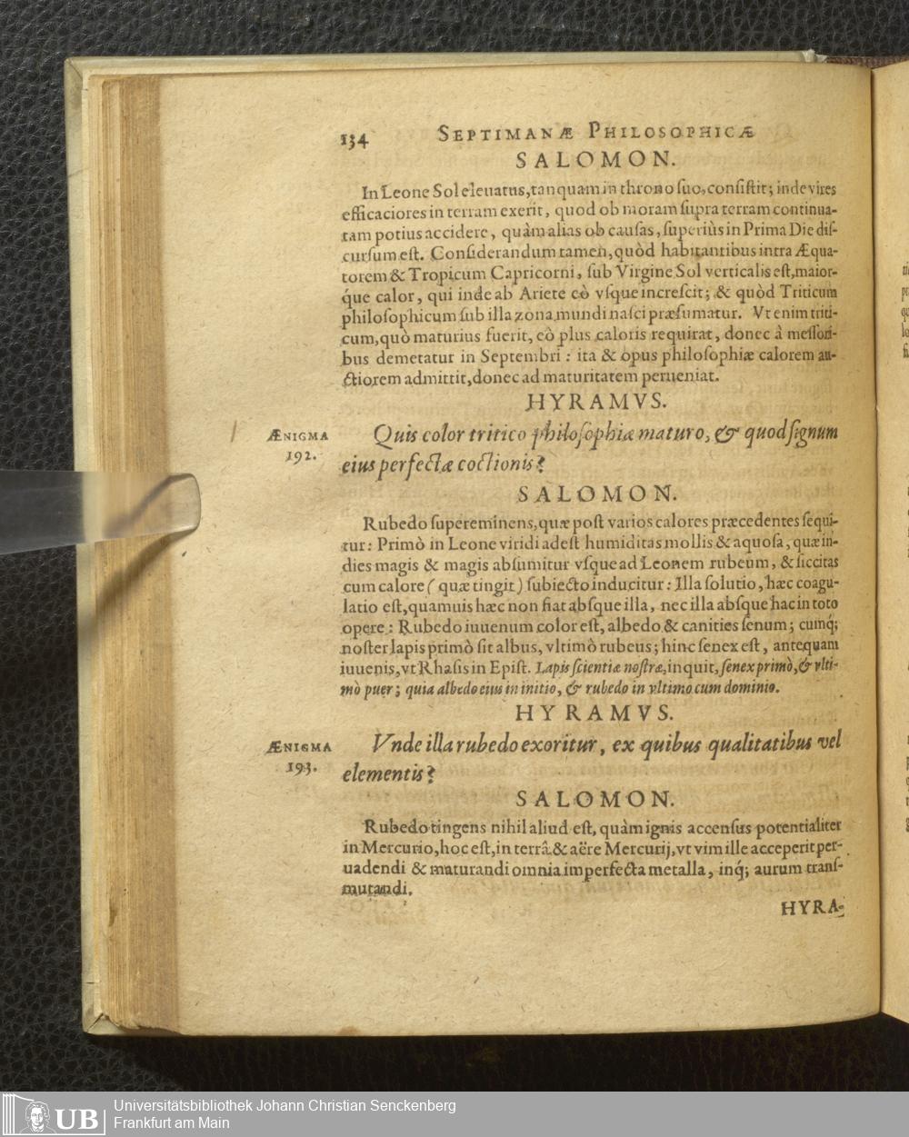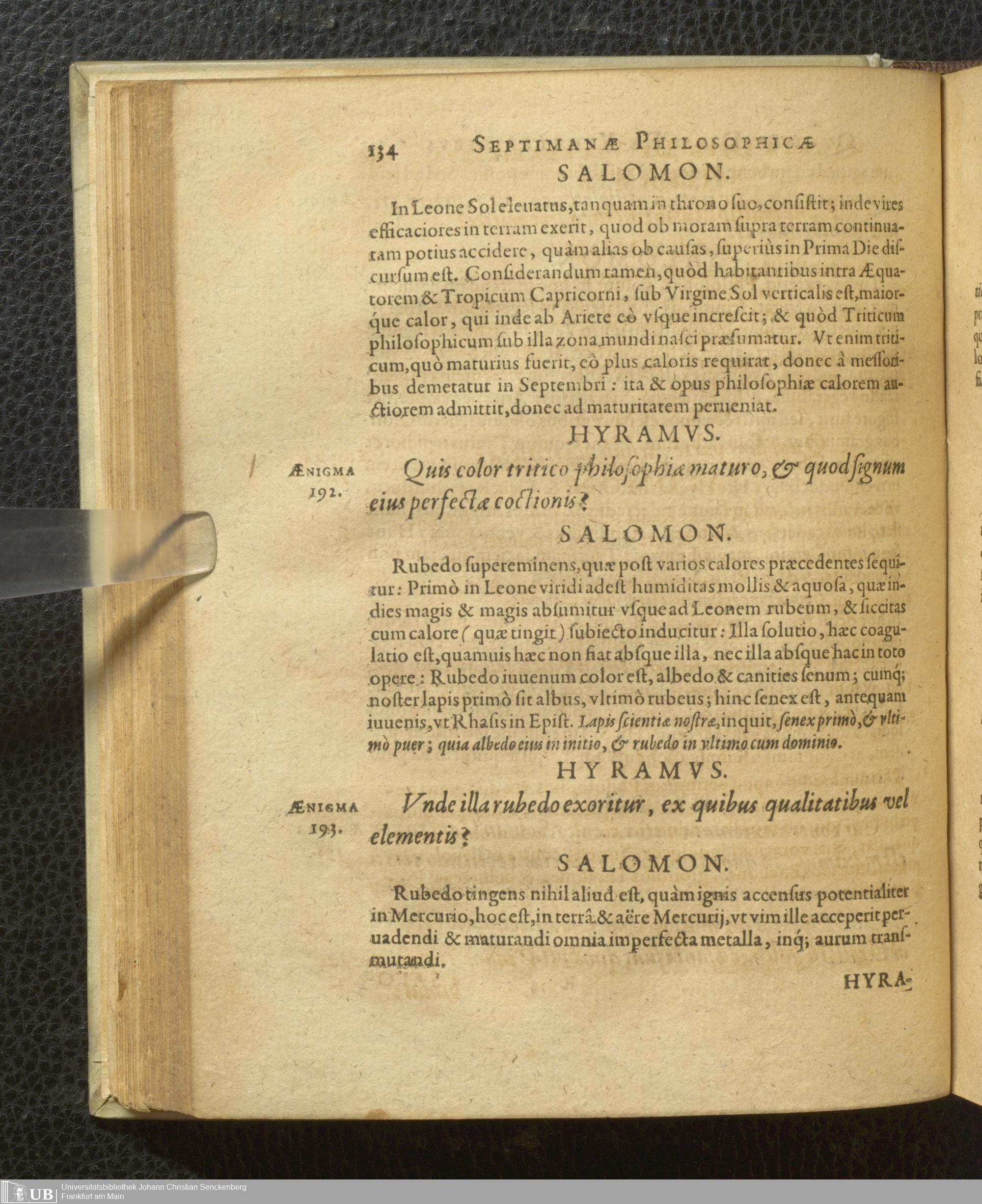 Septimana Philosophica : Qua Aenigmata Aureola De Omni Naturae Genere a Salomone Israe͏̈litarum sapientissimo Rege, & Arabiae Regina Saba, nec non Hyramo, Tyri Principe ... Colloquii proponuntur & enodantur ... / Authore Michaele Maiero ...