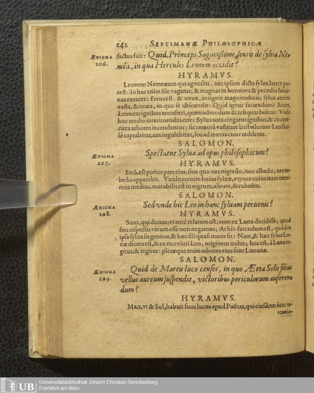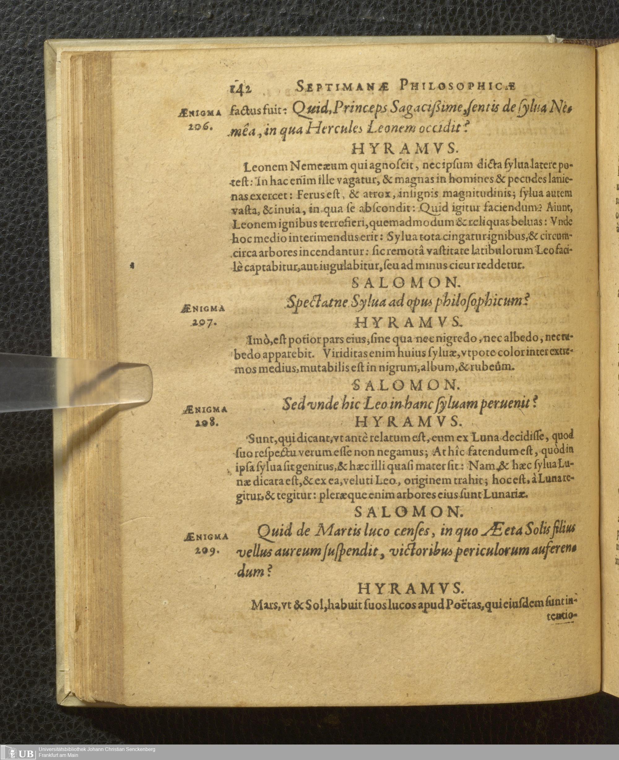 Septimana Philosophica : Qua Aenigmata Aureola De Omni Naturae Genere a Salomone Israe͏̈litarum sapientissimo Rege, & Arabiae Regina Saba, nec non Hyramo, Tyri Principe ... Colloquii proponuntur & enodantur ... / Authore Michaele Maiero ...