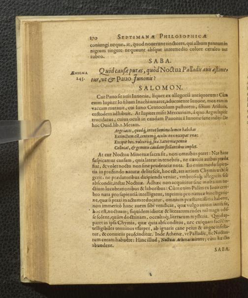 Septimana Philosophica : Qua Aenigmata Aureola De Omni Naturae Genere a Salomone Israe͏̈litarum sapientissimo Rege, & Arabiae Regina Saba, nec non Hyramo, Tyri Principe ... Colloquii proponuntur & enodantur ... / Authore Michaele Maiero ...