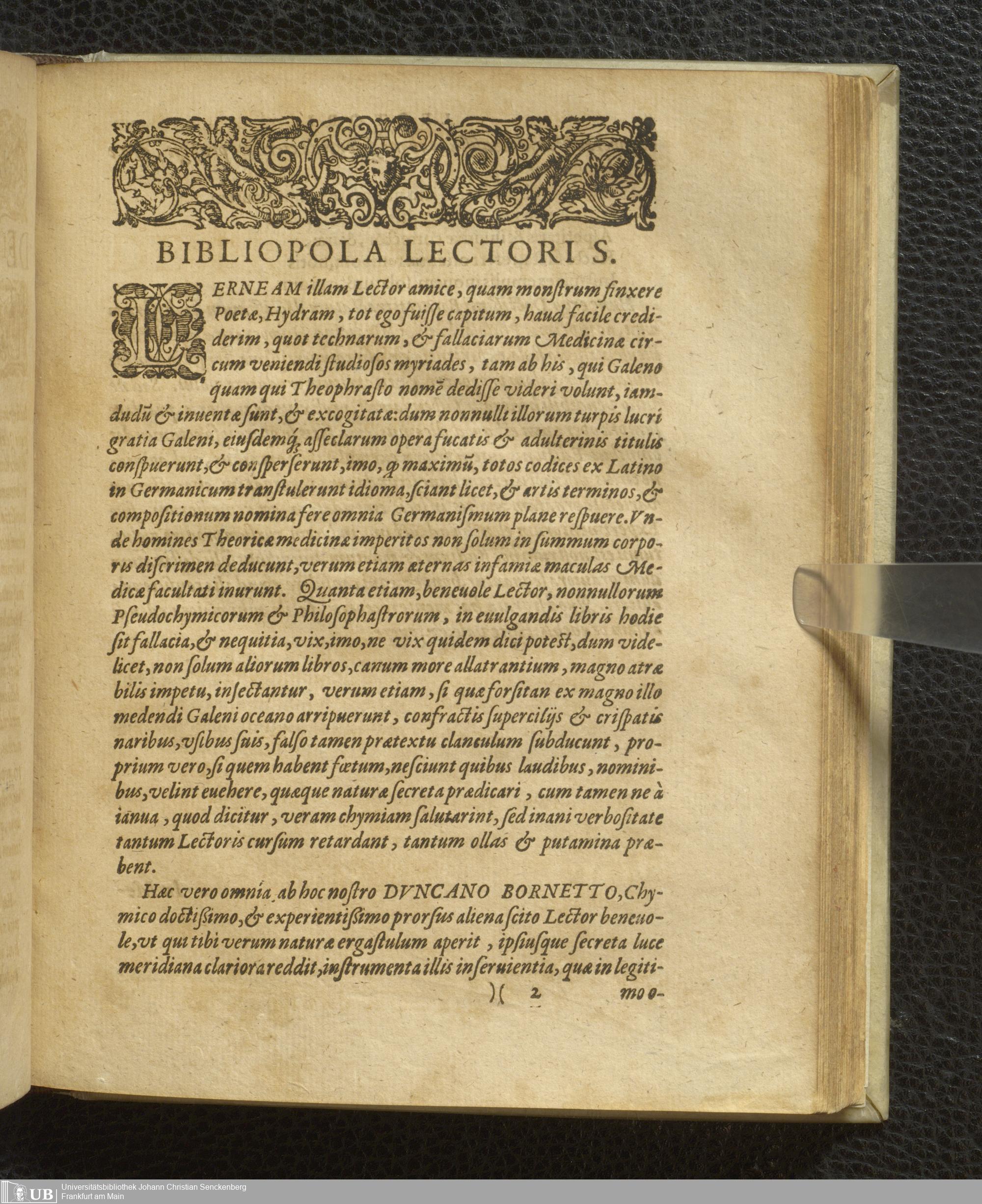 Duncani Bornetti Scoti Iatrochymicus, sive de Praeparatione et Compositione Medicamentorum chymicorum artificiosa, Tractatus : in quo methodice, perspicue, ac breviter, quicquid ad Iatrochymica pertinet, Candidatis Medicinae ac Philosophiae interioris aperitur