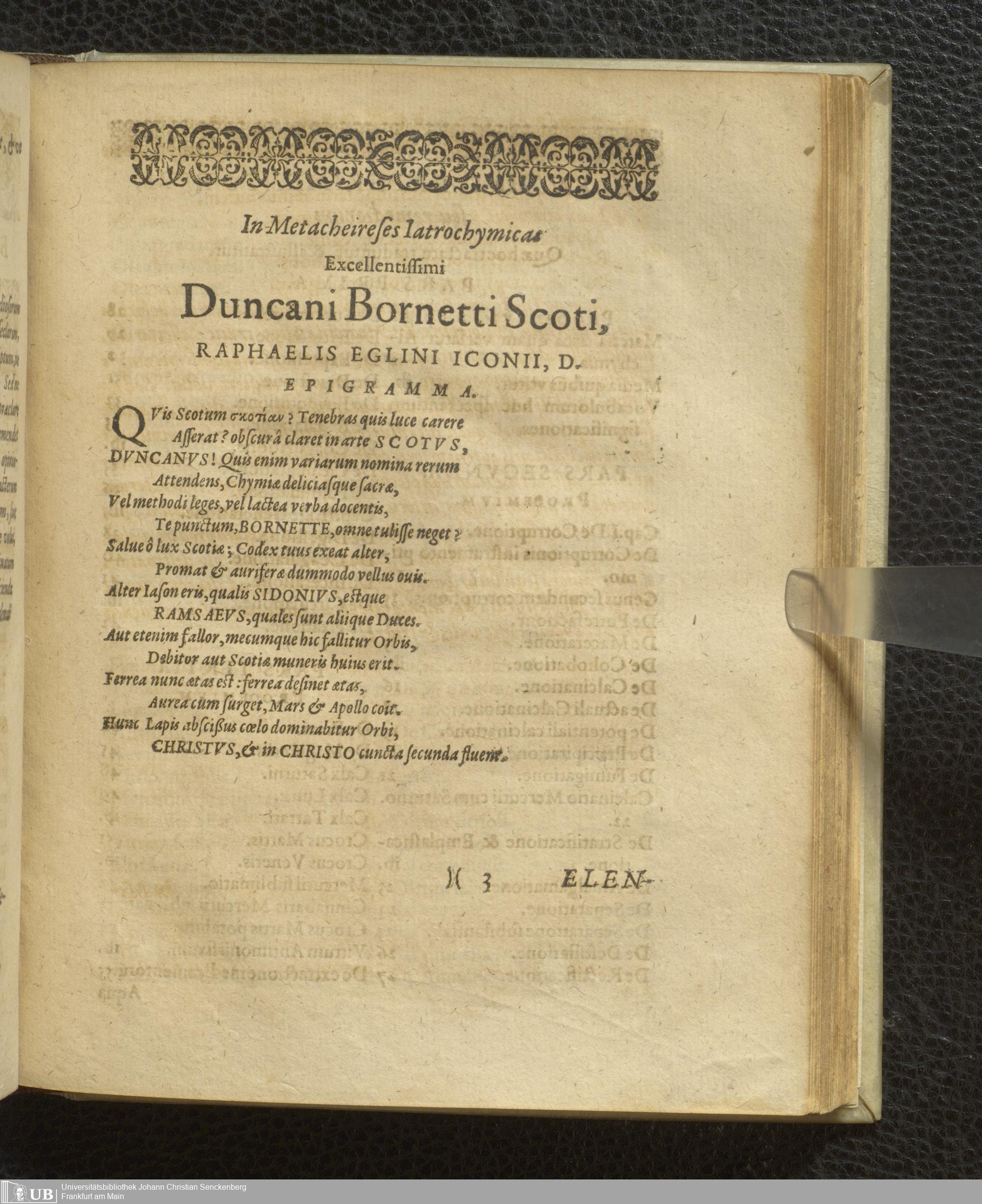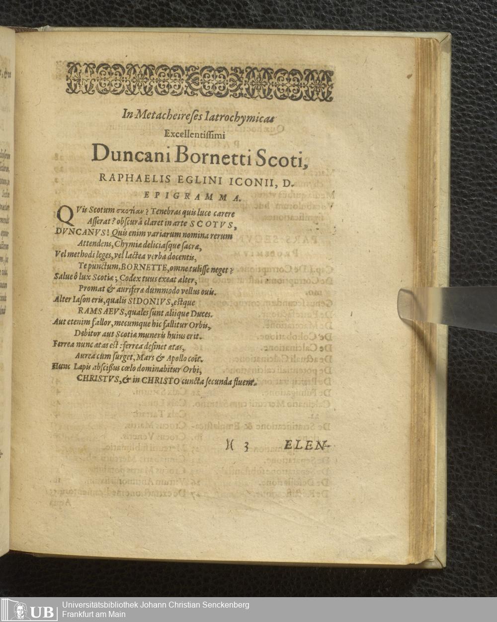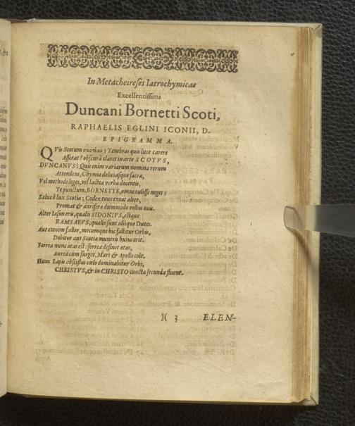 Duncani Bornetti Scoti Iatrochymicus, sive de Praeparatione et Compositione Medicamentorum chymicorum artificiosa, Tractatus : in quo methodice, perspicue, ac breviter, quicquid ad Iatrochymica pertinet, Candidatis Medicinae ac Philosophiae interioris aperitur