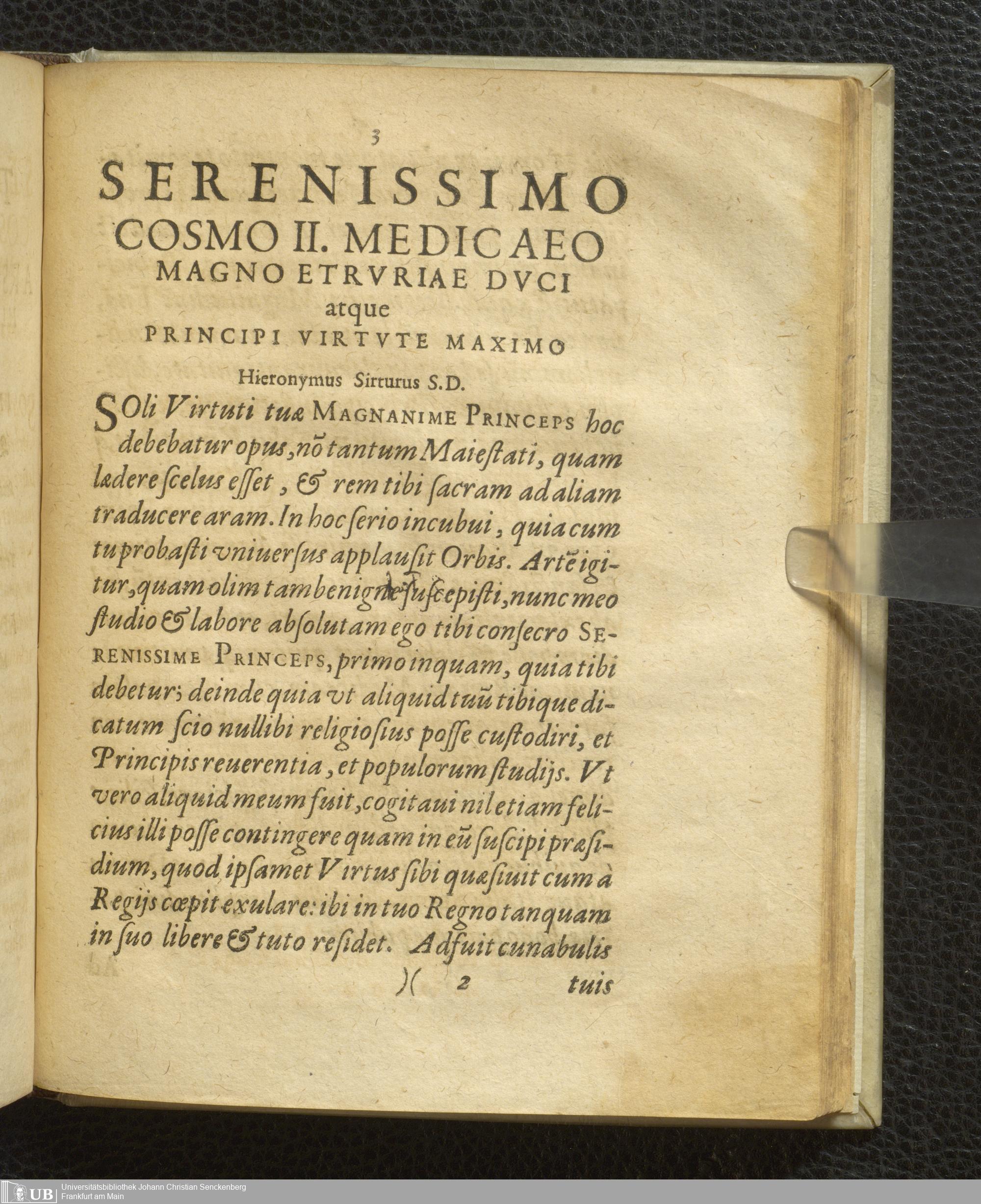Hieronymi Sirturi Mediolanensis Telescopium: Sive Ars Perficiendi Novum Illud Galilaei Visorium Instrumentum ad Sydera : In Tres Partes Divisa. Quarum prima exactissimam perspicillorum artem tradit, Secunda Telescopii Galilaei absolutam constructionem, & artem aperte docet. Tertia alterius Telescopii faciliorem usum: & admirandi sui Adinventi arcanum patefacit. Ad Serenissimum Cosimum II. Magnum Etruriae Ducem