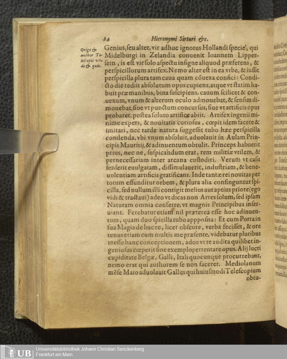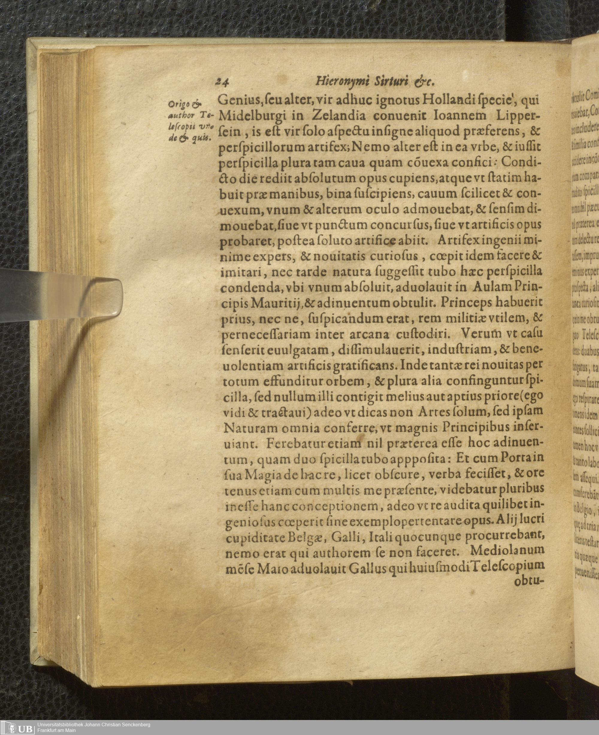 Hieronymi Sirturi Mediolanensis Telescopium: Sive Ars Perficiendi Novum Illud Galilaei Visorium Instrumentum ad Sydera : In Tres Partes Divisa. Quarum prima exactissimam perspicillorum artem tradit, Secunda Telescopii Galilaei absolutam constructionem, & artem aperte docet. Tertia alterius Telescopii faciliorem usum: & admirandi sui Adinventi arcanum patefacit. Ad Serenissimum Cosimum II. Magnum Etruriae Ducem
