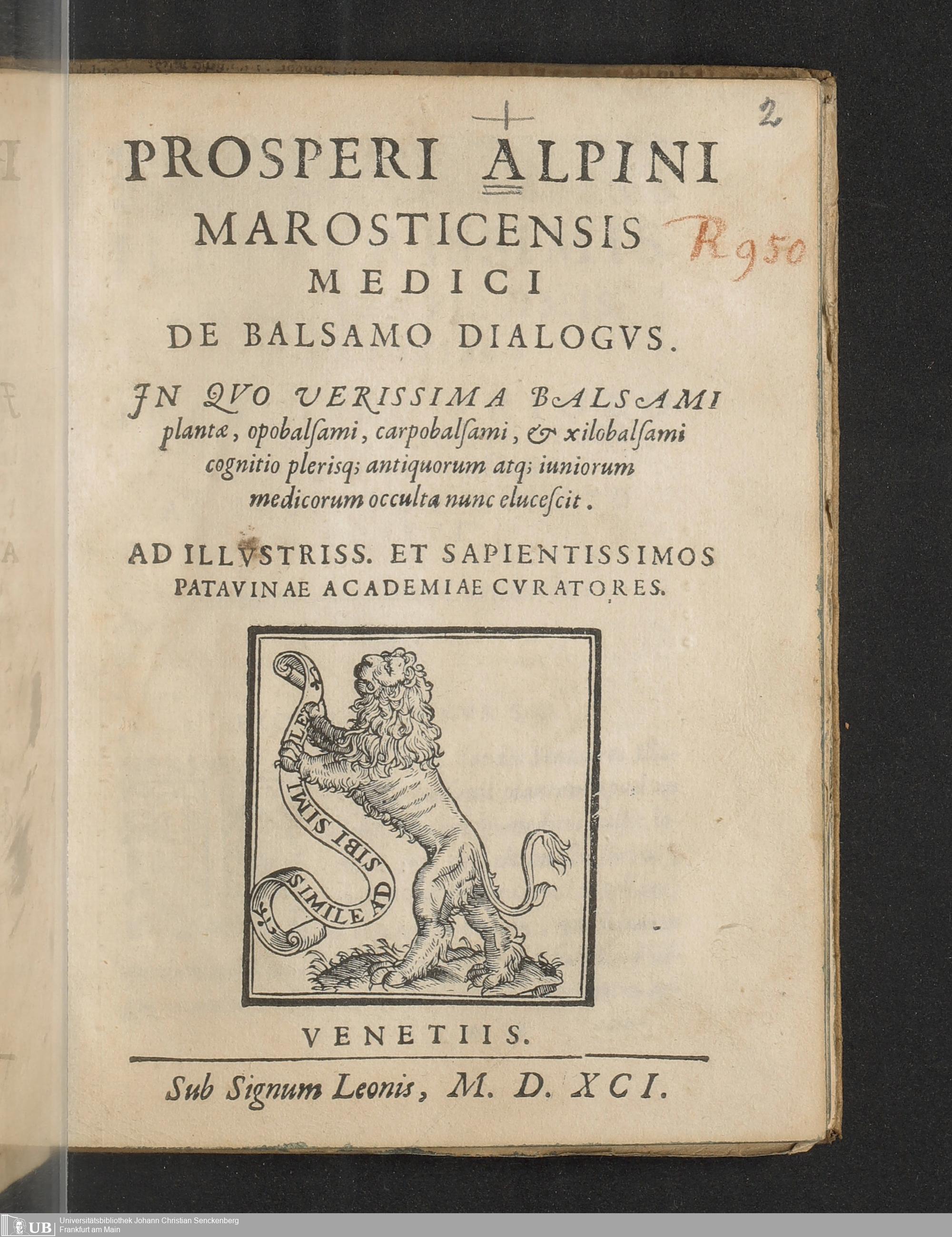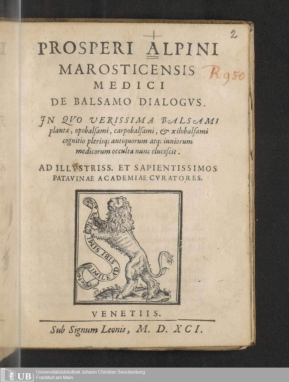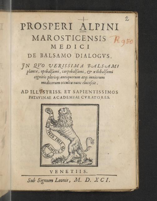 Prosperi Alpini Marosticensis Medici De Balsamo Dialogvs