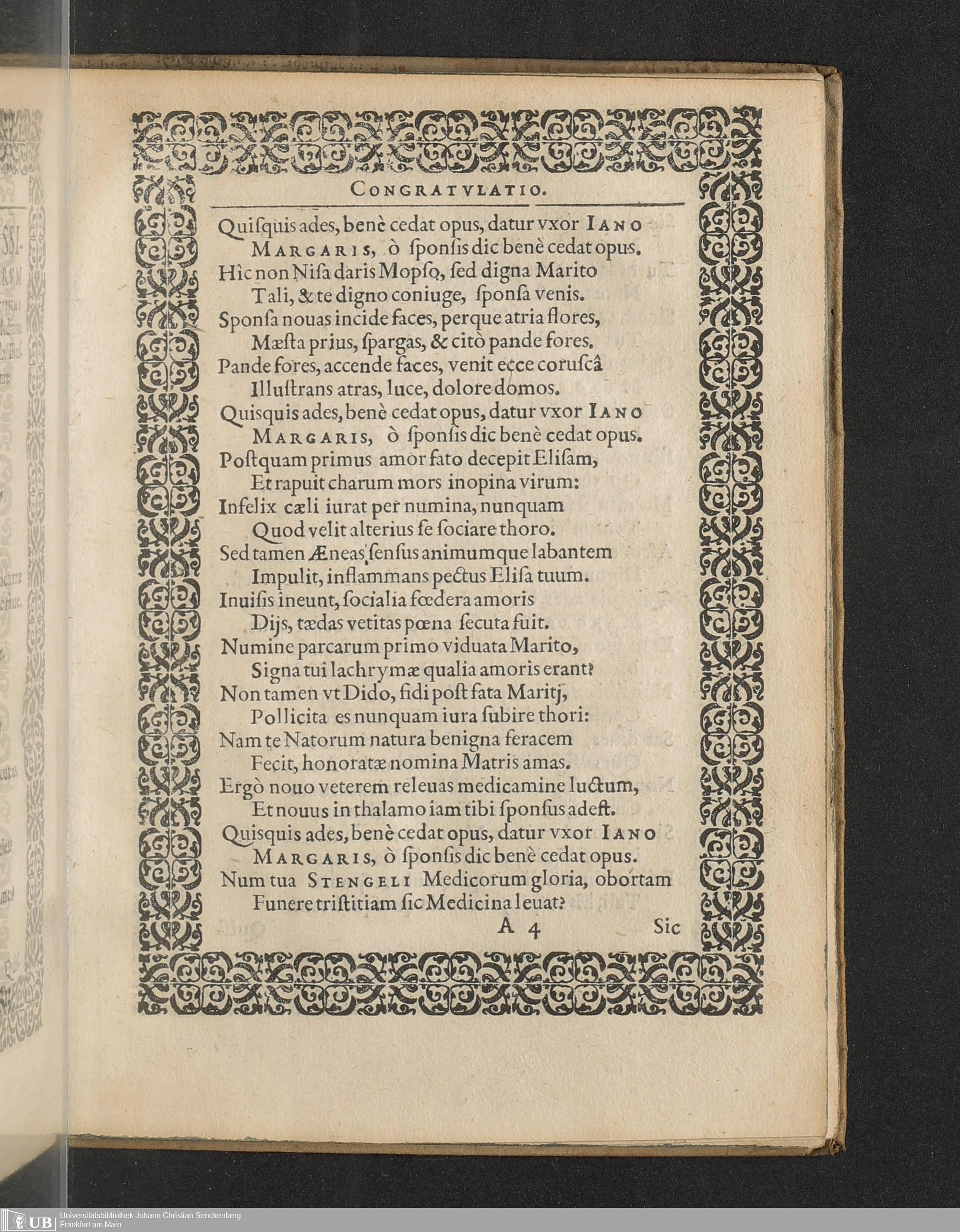 Gamica Syncharisis Sev Nvptialis Congratvlatio Doctrina, Experientiaqve Clarissimo Viro, Domino Ioanni Stengelio, Medicinae Doctori, eiusdemque facultatis in alma Herbipolensium Academia professori dignissimo, praeceptori suo maxime colendo ... / inscripta a M. Pavlo Stromario Ingolstadiensi Et Ioanne Fabro Bambergensi Medicinae Studiosis