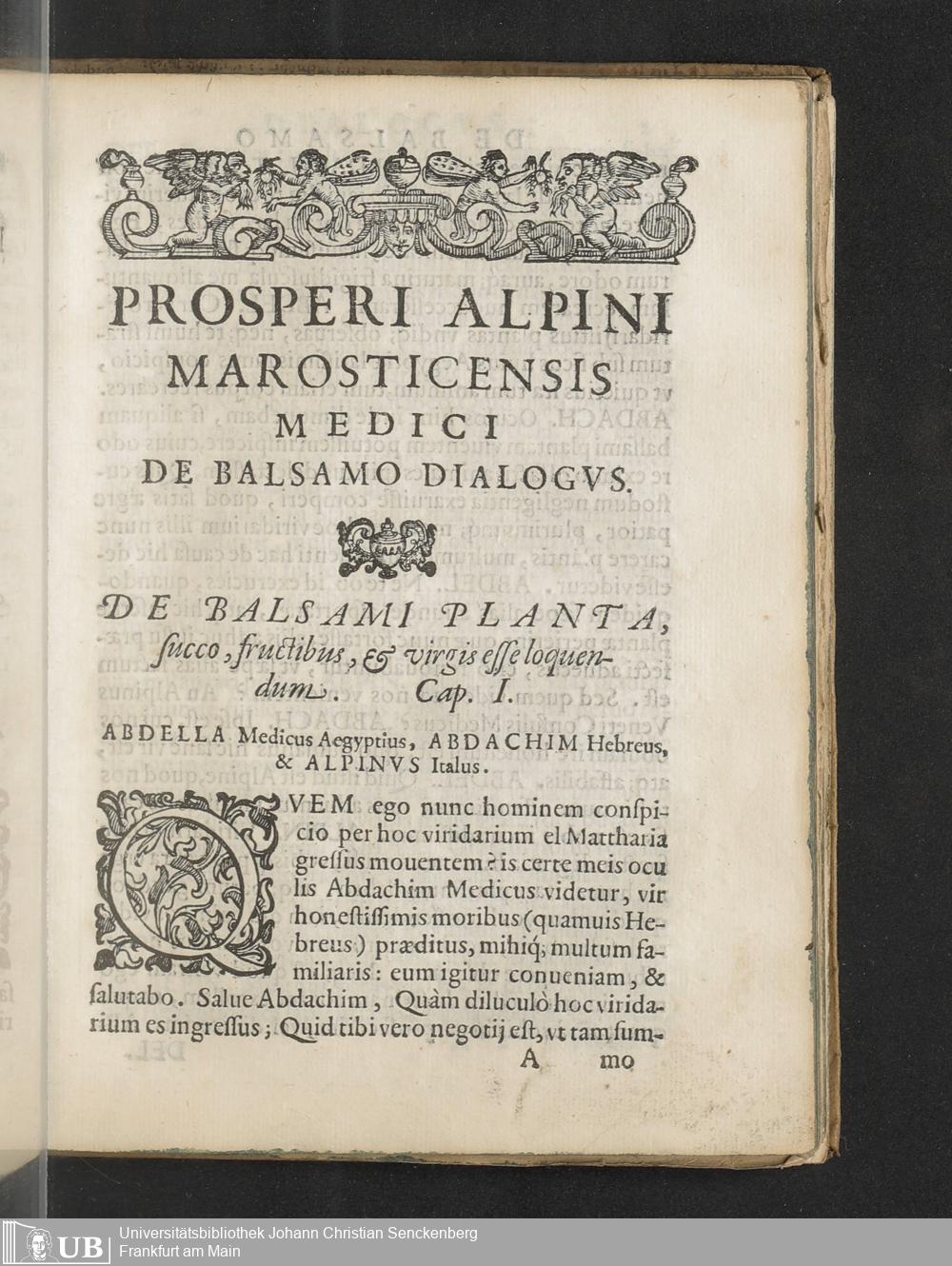 Prosperi Alpini Marosticensis Medici De Balsamo Dialogvs