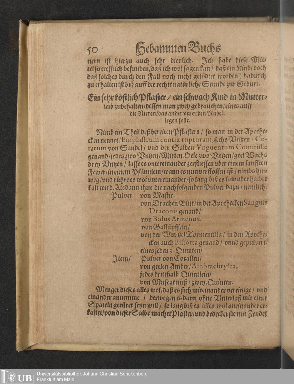 Darinnen von allerhand besorgenden gefährlichen zuständen, so den Schwangern unnd Geberenden Weibern zeit ihres schweren Leibs, auch in und nach der Geburt, wie nicht weniger den jungen Newgebornen Kindlein begegnen unnd widerfahren können, gehandelt wird ... Mit beygefügten etlichen nützlichen Recepten und Artzneyen ...