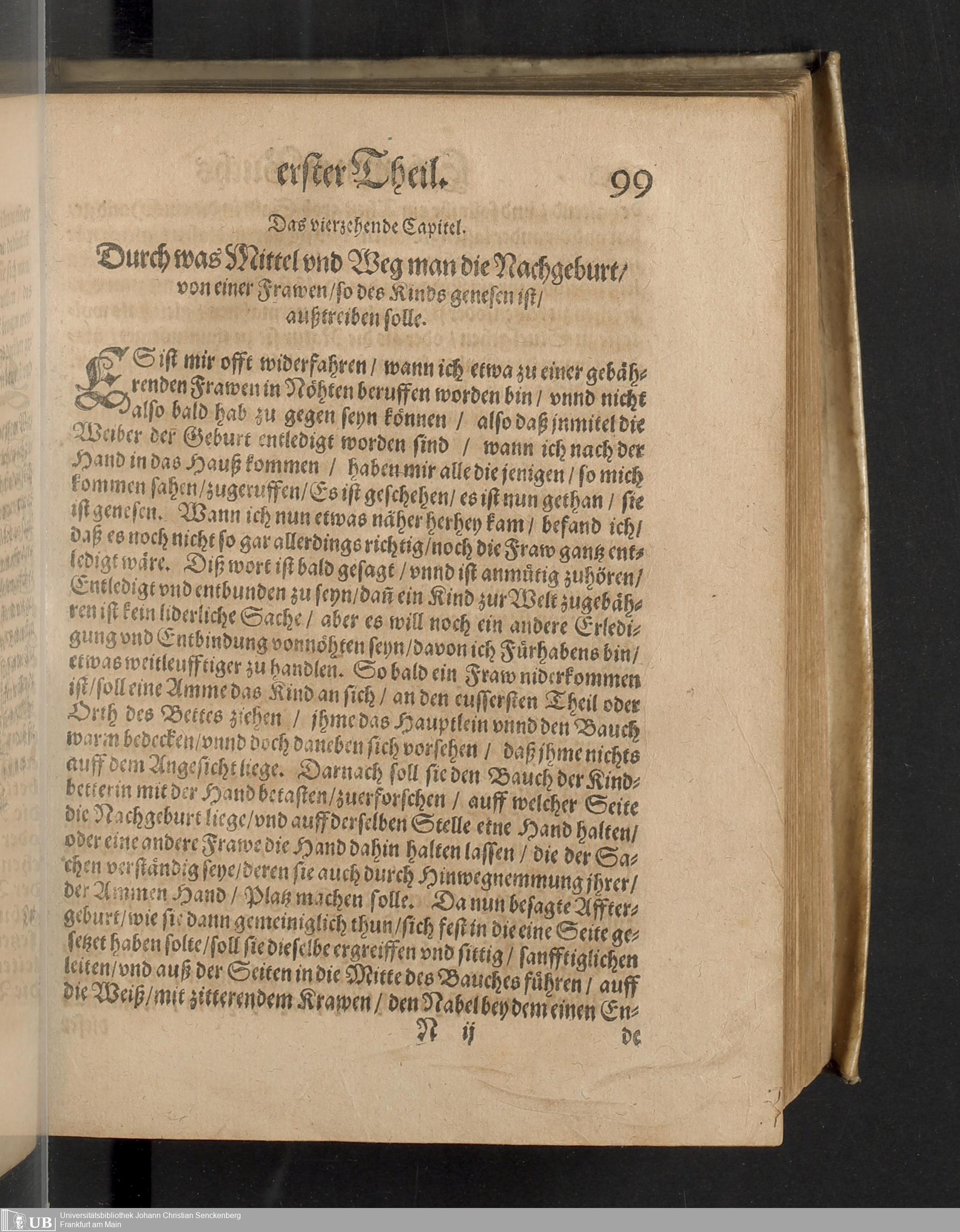In welchem Von dem vierdten Theil der weiblichen Gebährmutter, von der Zeit der Bildung deß Kinds in Mutterleib, wann sich dasselbige zu regen beginne, wie es in demselben wachse und zunemme, gehandelt wirt