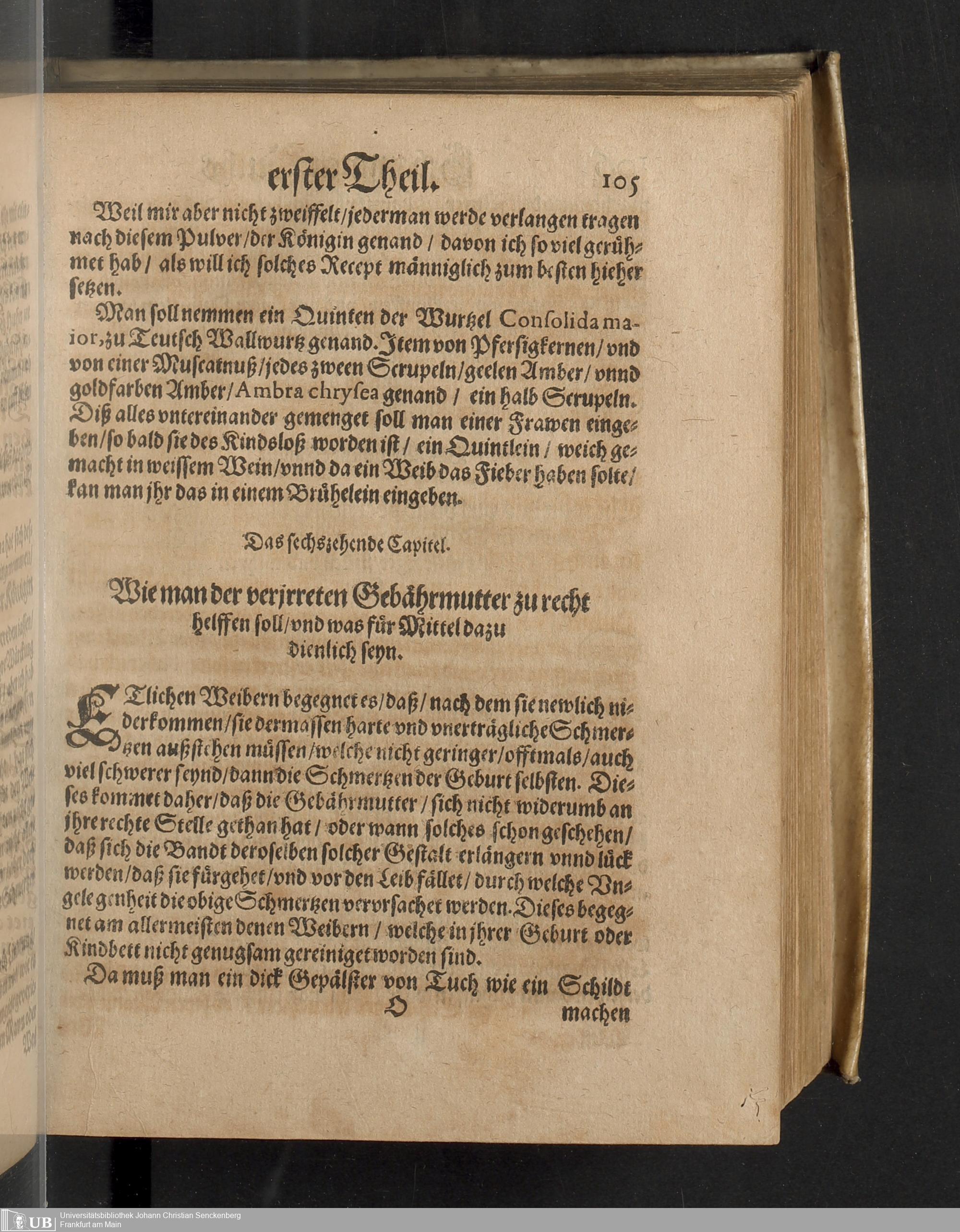 Darinnen von allerhand besorgenden gefährlichen zuständen, so den Schwangern unnd Geberenden Weibern zeit ihres schweren Leibs, auch in und nach der Geburt, wie nicht weniger den jungen Newgebornen Kindlein begegnen unnd widerfahren können, gehandelt wird ... Mit beygefügten etlichen nützlichen Recepten und Artzneyen ...