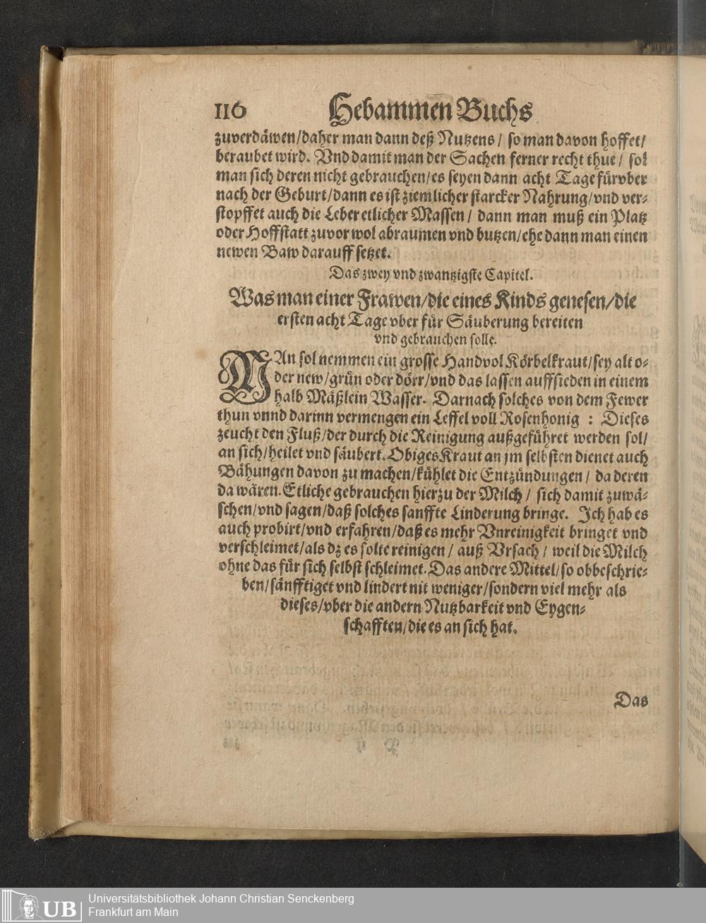Darinnen von allerhand besorgenden gefährlichen zuständen, so den Schwangern unnd Geberenden Weibern zeit ihres schweren Leibs, auch in und nach der Geburt, wie nicht weniger den jungen Newgebornen Kindlein begegnen unnd widerfahren können, gehandelt wird ... Mit beygefügten etlichen nützlichen Recepten und Artzneyen ...