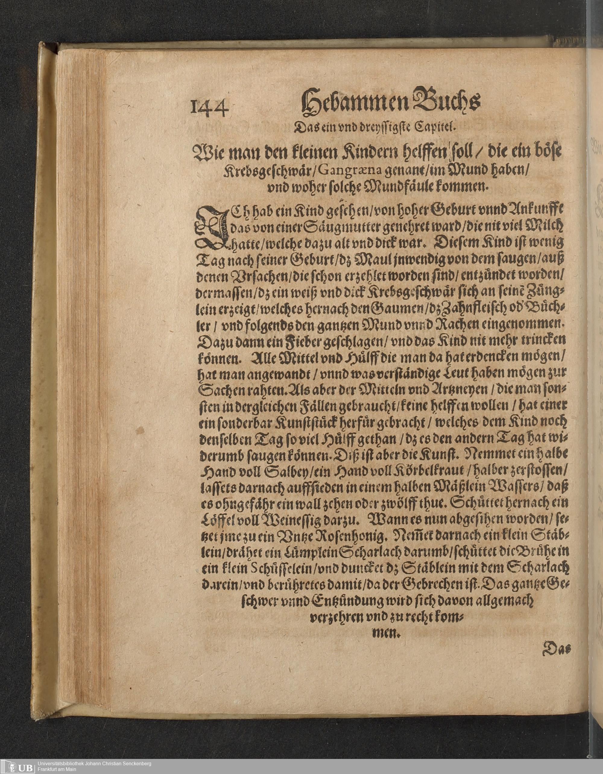 Darinnen von allerhand besorgenden gefährlichen zuständen, so den Schwangern unnd Geberenden Weibern zeit ihres schweren Leibs, auch in und nach der Geburt, wie nicht weniger den jungen Newgebornen Kindlein begegnen unnd widerfahren können, gehandelt wird ... Mit beygefügten etlichen nützlichen Recepten und Artzneyen ...