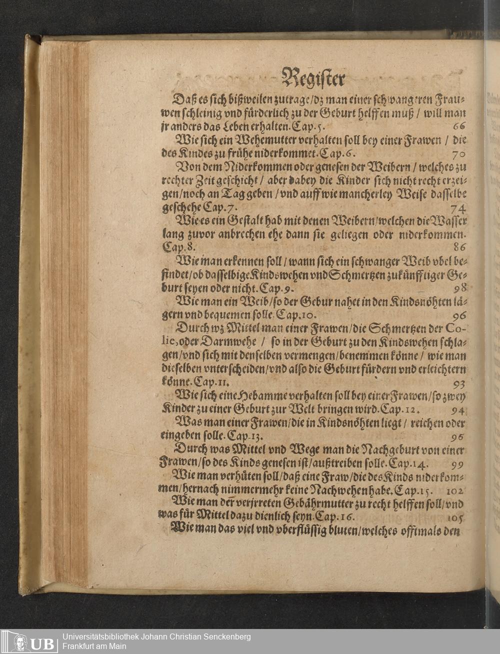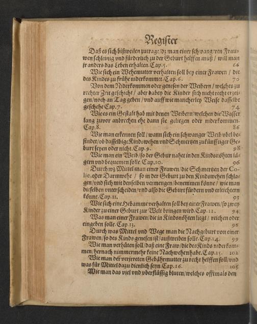 Darinnen von allerhand besorgenden gefährlichen zuständen, so den Schwangern unnd Geberenden Weibern zeit ihres schweren Leibs, auch in und nach der Geburt, wie nicht weniger den jungen Newgebornen Kindlein begegnen unnd widerfahren können, gehandelt wird ... Mit beygefügten etlichen nützlichen Recepten und Artzneyen ...
