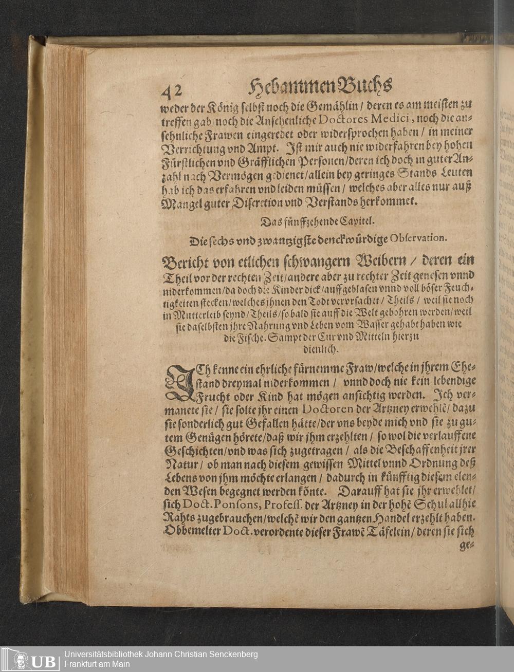 In welchem Von dem vierdten Theil der weiblichen Gebährmutter, von der Zeit der Bildung deß Kinds in Mutterleib, wann sich dasselbige zu regen beginne, wie es in demselben wachse und zunemme, gehandelt wirt