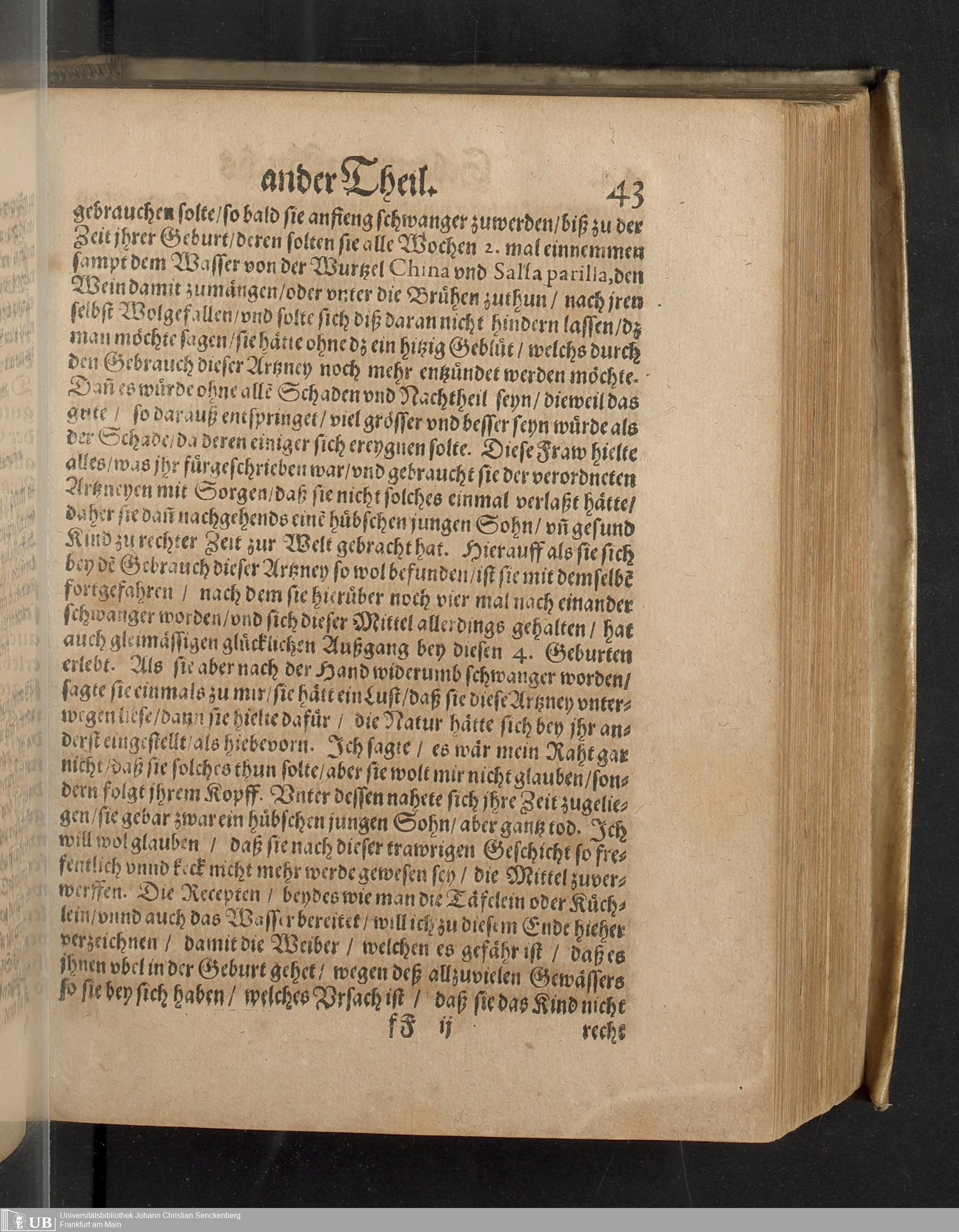 In welchem Von dem vierdten Theil der weiblichen Gebährmutter, von der Zeit der Bildung deß Kinds in Mutterleib, wann sich dasselbige zu regen beginne, wie es in demselben wachse und zunemme, gehandelt wirt