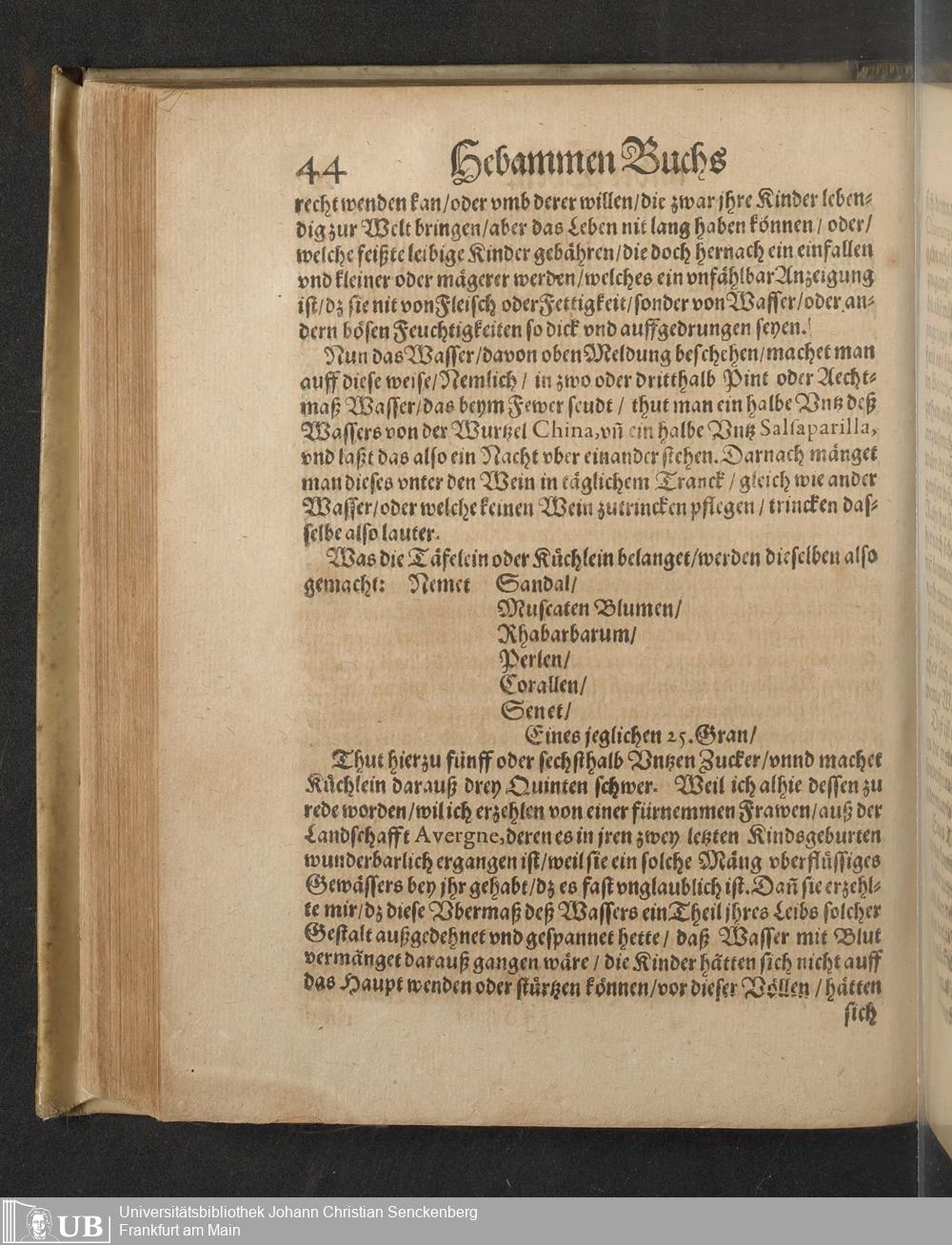 Darinnen von allerhand besorgenden gefährlichen zuständen, so den Schwangern unnd Geberenden Weibern zeit ihres schweren Leibs, auch in und nach der Geburt, wie nicht weniger den jungen Newgebornen Kindlein begegnen unnd widerfahren können, gehandelt wird ... Mit beygefügten etlichen nützlichen Recepten und Artzneyen ...