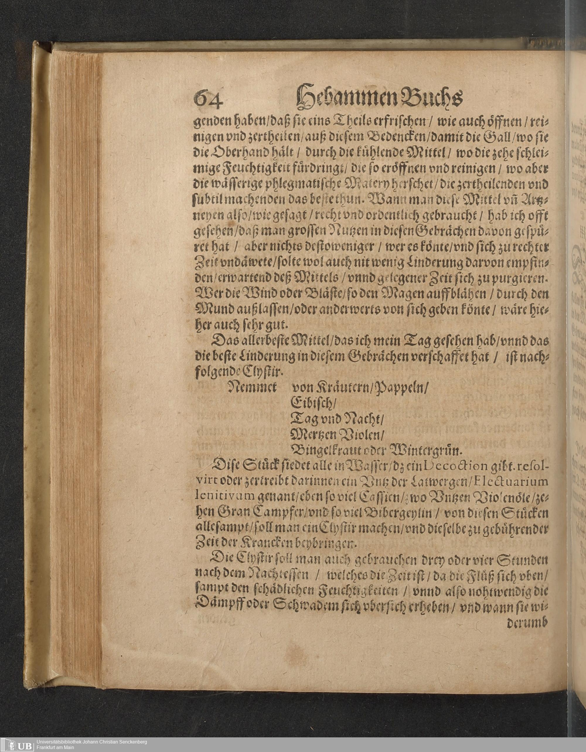 Darinnen von allerhand besorgenden gefährlichen zuständen, so den Schwangern unnd Geberenden Weibern zeit ihres schweren Leibs, auch in und nach der Geburt, wie nicht weniger den jungen Newgebornen Kindlein begegnen unnd widerfahren können, gehandelt wird ... Mit beygefügten etlichen nützlichen Recepten und Artzneyen ...