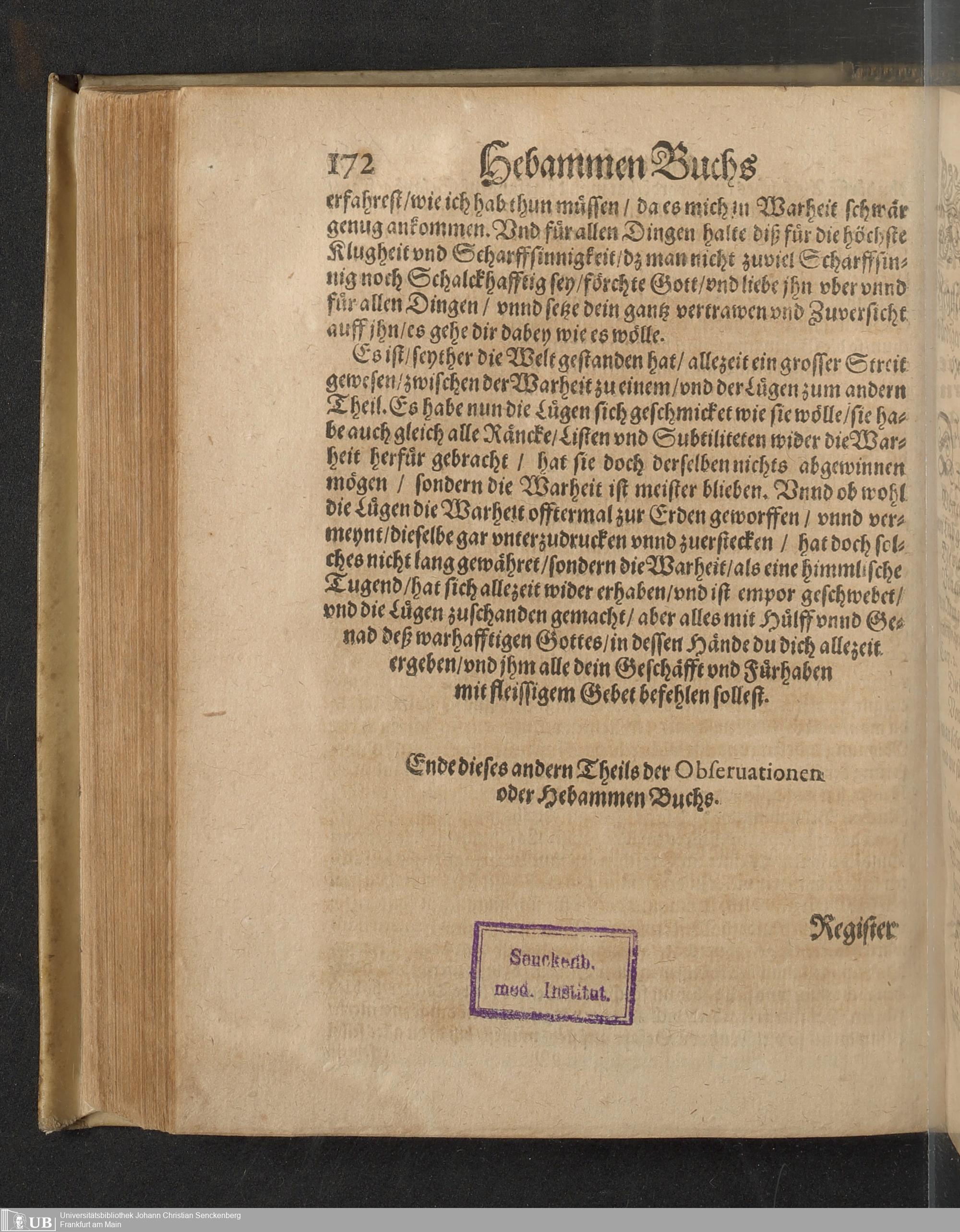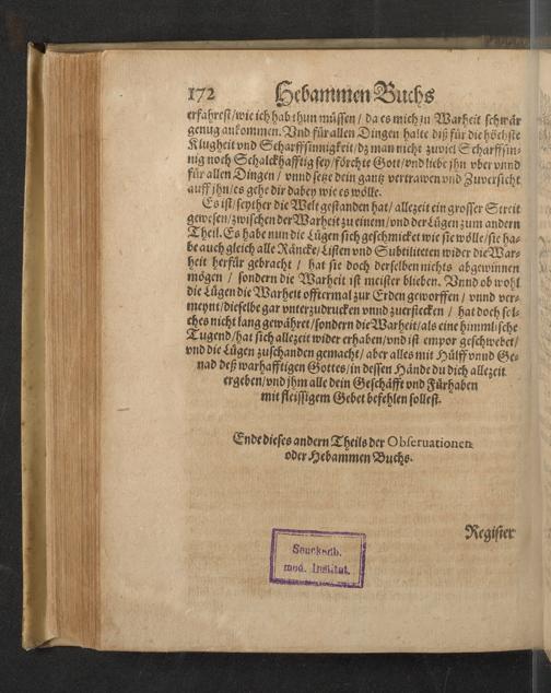 Darinnen von allerhand besorgenden gefährlichen zuständen, so den Schwangern unnd Geberenden Weibern zeit ihres schweren Leibs, auch in und nach der Geburt, wie nicht weniger den jungen Newgebornen Kindlein begegnen unnd widerfahren können, gehandelt wird ... Mit beygefügten etlichen nützlichen Recepten und Artzneyen ...