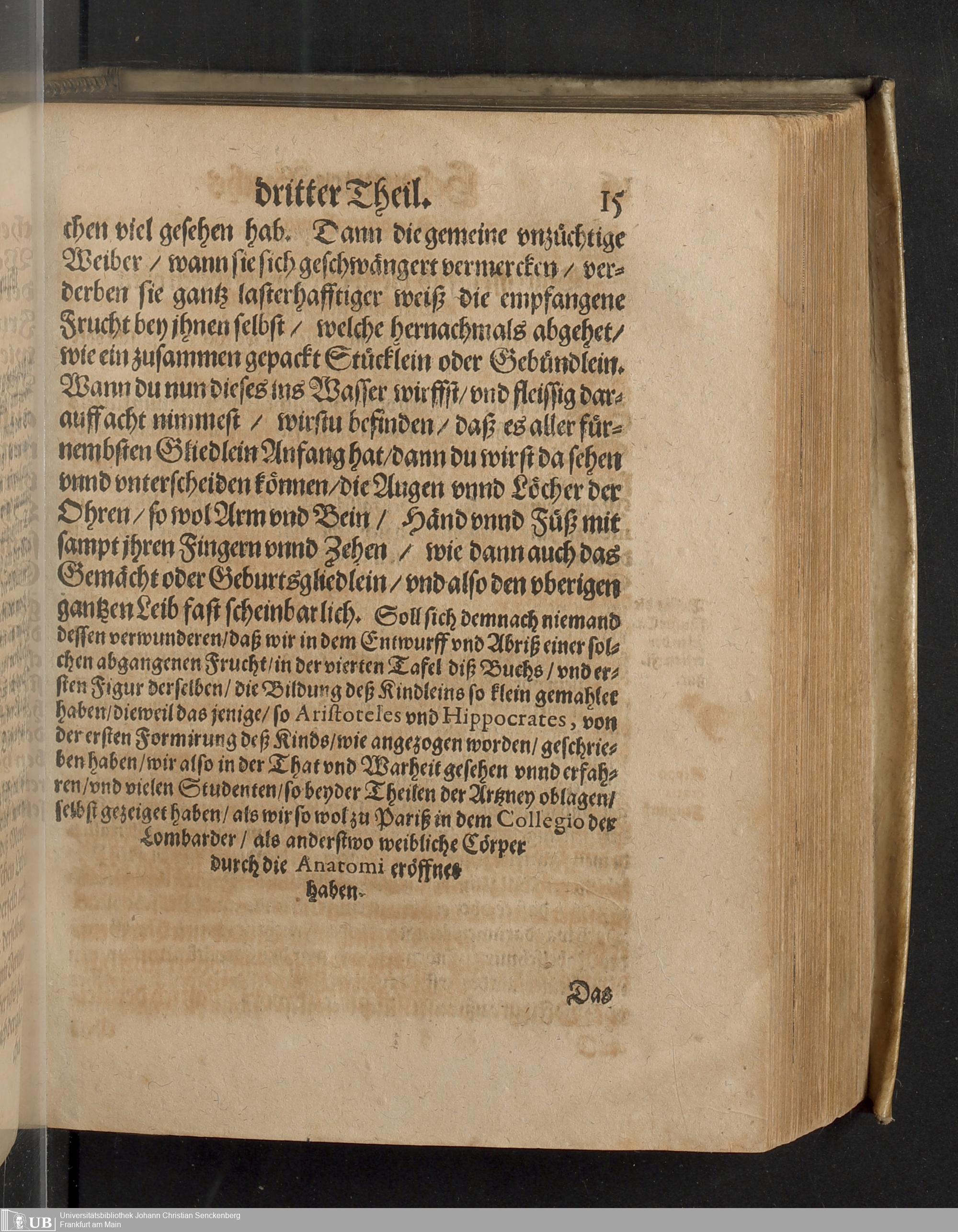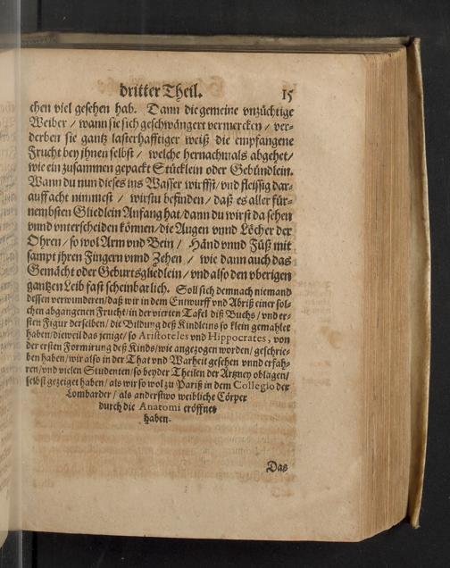 dritter Theil (1626) In welchem Von dem vierdten Theil der weiblichen Gebährmutter, von der Zeit der Bildung deß Kinds in Mutterleib, wann sich dasselbige zu regen beginne, wie es in demselben wachse und zunemme, gehandelt wirt / Mehrertheils auß deß Hocherfahrnen Medici, Severini Pinaei, Anatomischen Tractat, so er in Lateinischer Spraach beschrieben, in das Teutsche ubergesetzt, und umb Gleichheit der Materien willen, den zweyen vorhergehenden Theilen dieses Hebammen Buchs zur Erleuterung angehengt