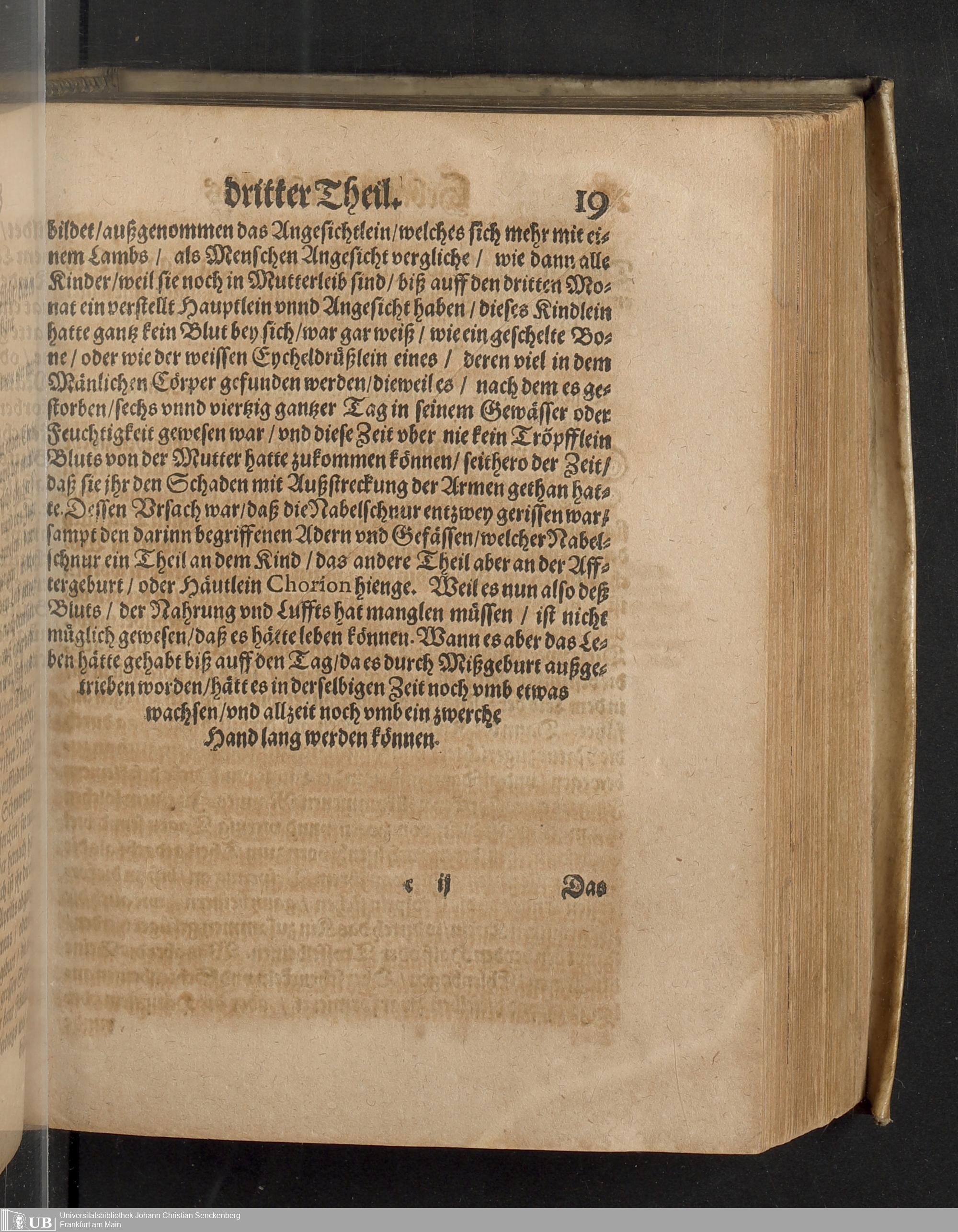 dritter Theil (1626) In welchem Von dem vierdten Theil der weiblichen Gebährmutter, von der Zeit der Bildung deß Kinds in Mutterleib, wann sich dasselbige zu regen beginne, wie es in demselben wachse und zunemme, gehandelt wirt / Mehrertheils auß deß Hocherfahrnen Medici, Severini Pinaei, Anatomischen Tractat, so er in Lateinischer Spraach beschrieben, in das Teutsche ubergesetzt, und umb Gleichheit der Materien willen, den zweyen vorhergehenden Theilen dieses Hebammen Buchs zur Erleuterung angehengt