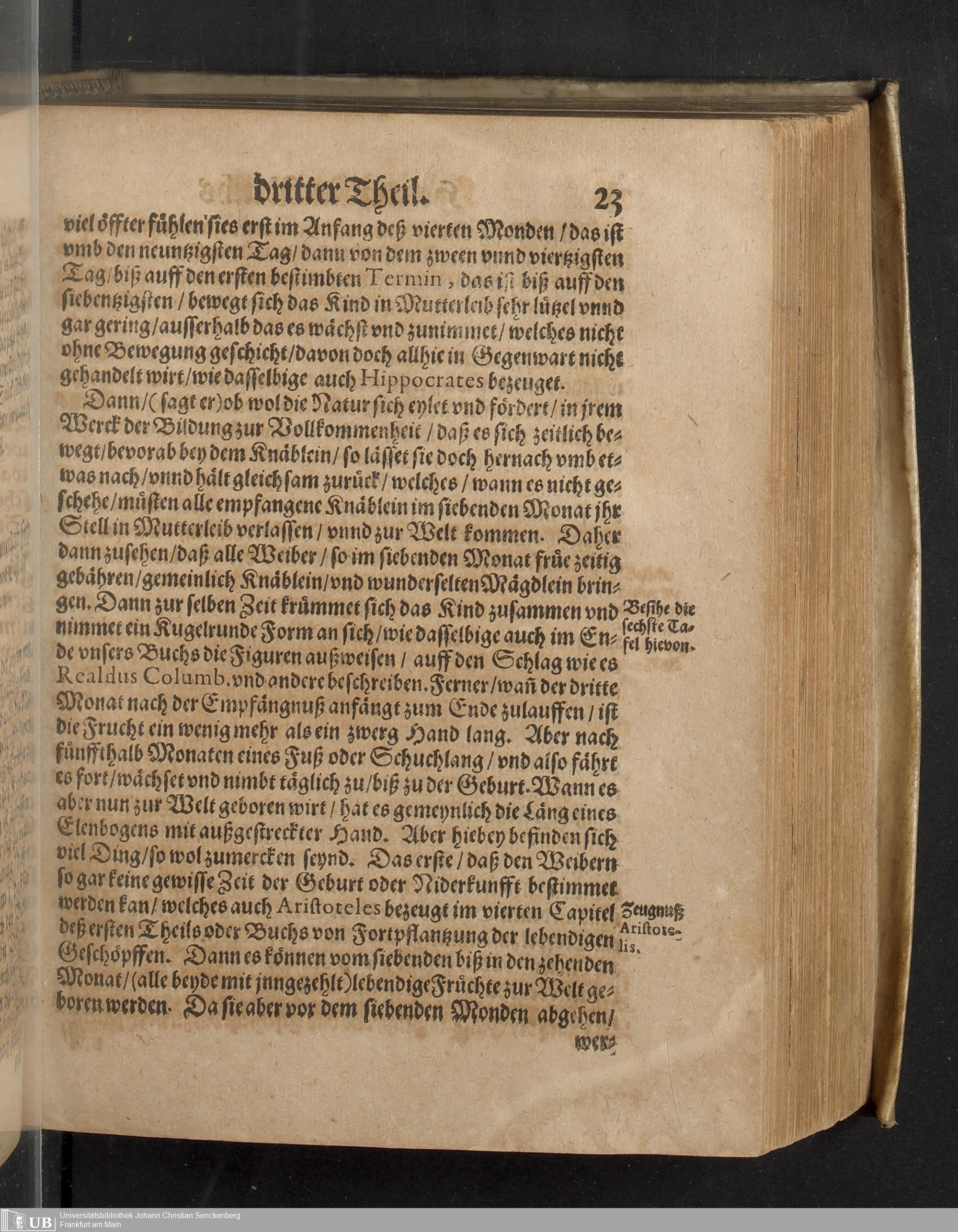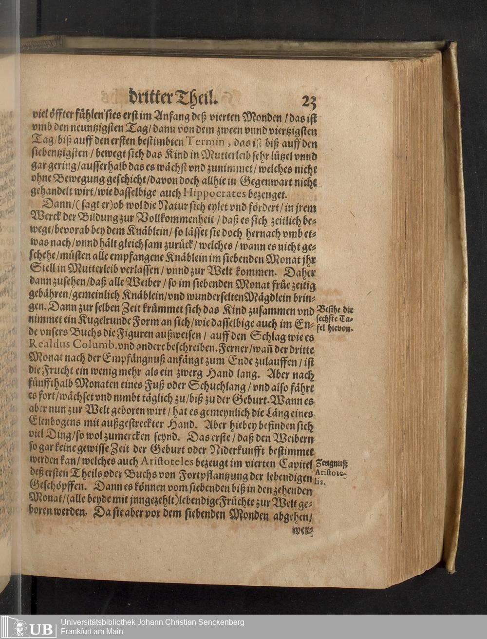 dritter Theil (1626) In welchem Von dem vierdten Theil der weiblichen Gebährmutter, von der Zeit der Bildung deß Kinds in Mutterleib, wann sich dasselbige zu regen beginne, wie es in demselben wachse und zunemme, gehandelt wirt / Mehrertheils auß deß Hocherfahrnen Medici, Severini Pinaei, Anatomischen Tractat, so er in Lateinischer Spraach beschrieben, in das Teutsche ubergesetzt, und umb Gleichheit der Materien willen, den zweyen vorhergehenden Theilen dieses Hebammen Buchs zur Erleuterung angehengt