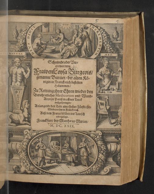 Schutzrede oder Verantwortung Frawen Loysa Burgeois, genannt Burcier, der alten Königin in Franckreich bestelten Hebammen : Zu Rettung ihrer Ehren wieder den Bericht etlicher Medicorum und Wund-Artzte zu Pariß in offnen Truck außgesprenget, Anlangendt den Todt einer hohen Fürstlichen Weibsperson in Franckreich : Auß dem Frantzösischen ins Teutsch ubergesetzt