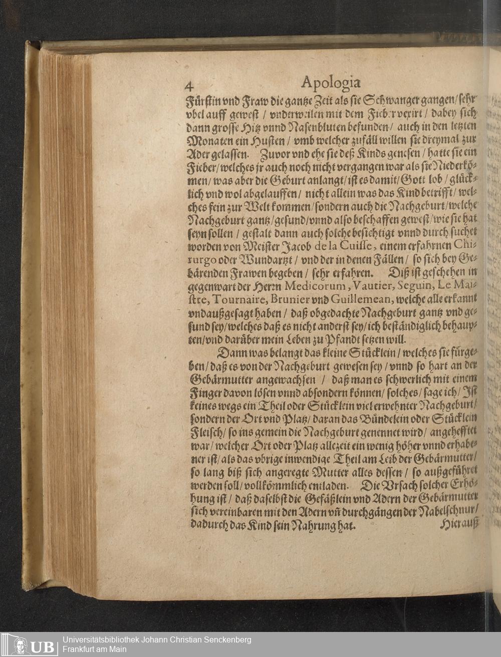 Schutzrede oder Verantwortung Frawen Loysa Burgeois, genannt Burcier, der alten Königin in Franckreich bestelten Hebammen : Zu Rettung ihrer Ehren wieder den Bericht etlicher Medicorum und Wund-Artzte zu Pariß in offnen Truck außgesprenget, Anlangendt den Todt einer hohen Fürstlichen Weibsperson in Franckreich : Auß dem Frantzösischen ins Teutsch ubergesetzt