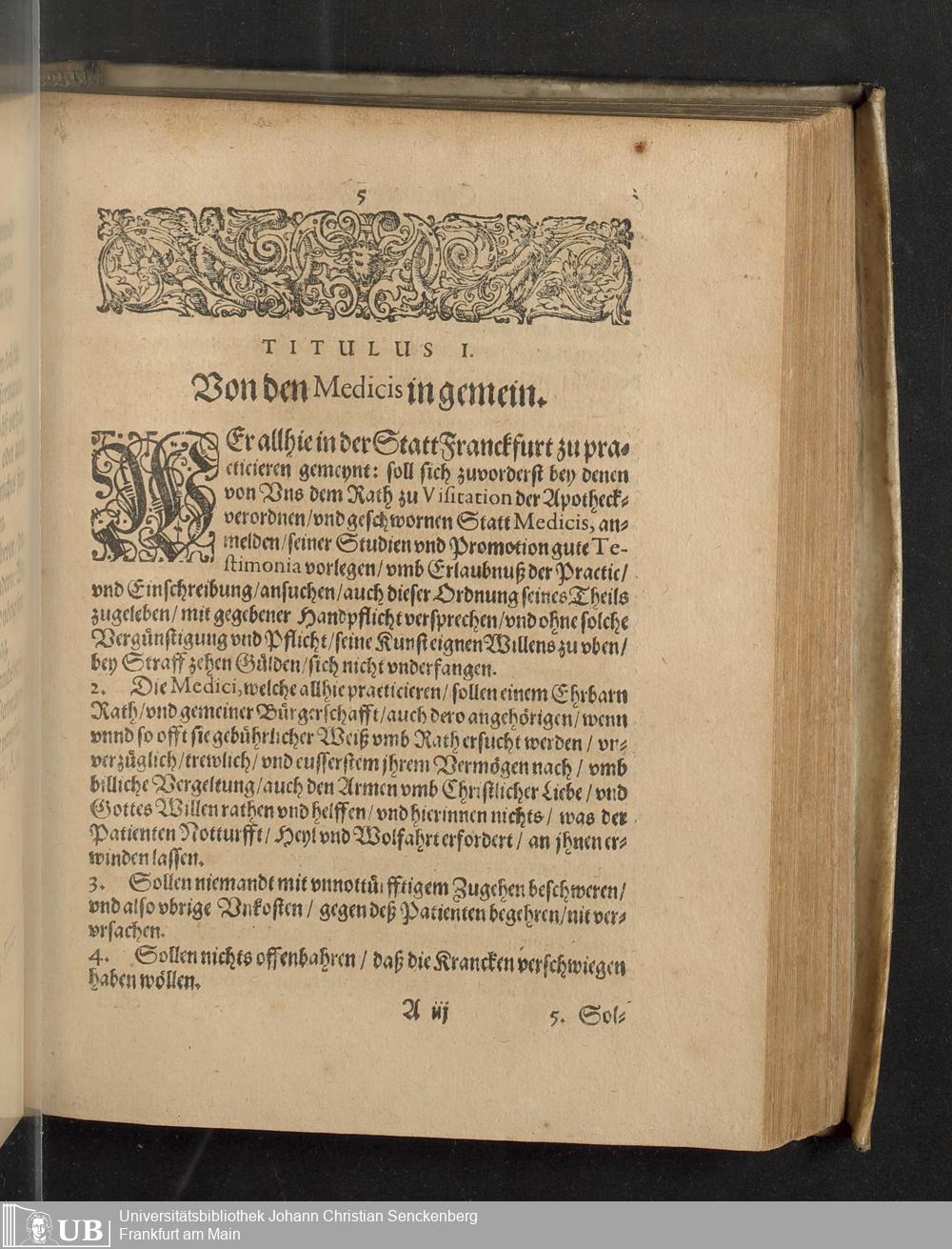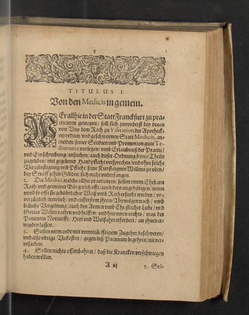 Reformation Oder Ernewerte Ordnung der Statt Franckfurt am Mayn, die Pflege der Gesundtheit betreffendt : Welche den Medicis, Apotheckern vnd andern angehörigen daselbsten, Auch sonsten jedermänniglichen zur Nachrichtung gegeben worden ; Beneben dem Tax vnd Werth der Artzneyen, welche in den Apothecken allda zufinden