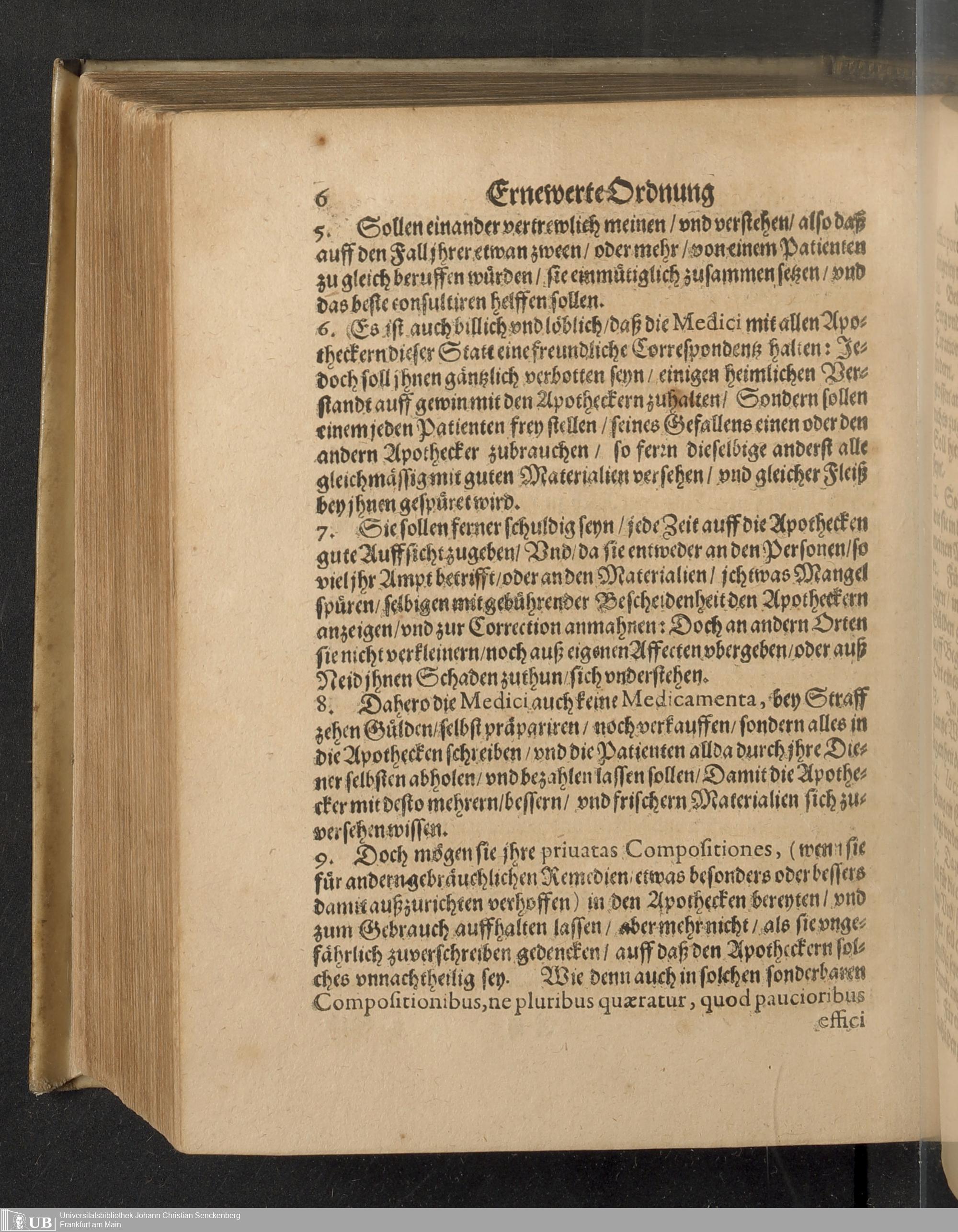 Reformation Oder Ernewerte Ordnung der Statt Franckfurt am Mayn, die Pflege der Gesundtheit betreffendt : Welche den Medicis, Apotheckern vnd andern angehörigen daselbsten, Auch sonsten jedermänniglichen zur Nachrichtung gegeben worden ; Beneben dem Tax vnd Werth der Artzneyen, welche in den Apothecken allda zufinden