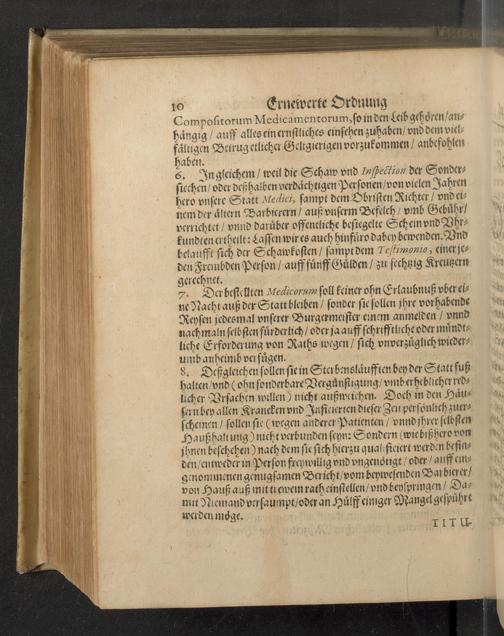 Reformation Oder Ernewerte Ordnung der Statt Franckfurt am Mayn, die Pflege der Gesundtheit betreffendt : Welche den Medicis, Apotheckern vnd andern angehörigen daselbsten, Auch sonsten jedermänniglichen zur Nachrichtung gegeben worden ; Beneben dem Tax vnd Werth der Artzneyen, welche in den Apothecken allda zufinden