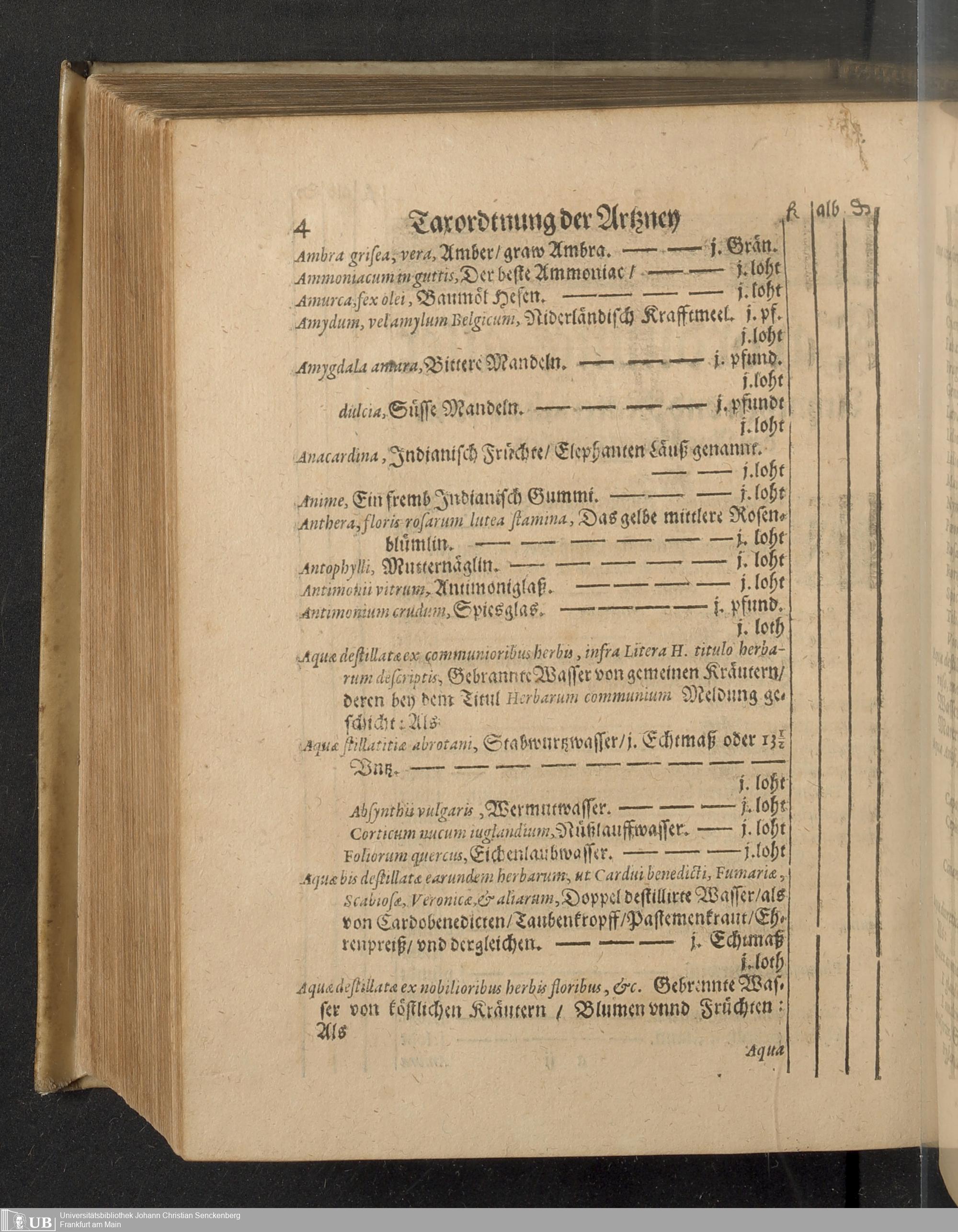 Reformation Oder Ernewerte Ordnung der Statt Franckfurt am Mayn, die Pflege der Gesundtheit betreffendt : Welche den Medicis, Apotheckern vnd andern angehörigen daselbsten, Auch sonsten jedermänniglichen zur Nachrichtung gegeben worden ; Beneben dem Tax vnd Werth der Artzneyen, welche in den Apothecken allda zufinden