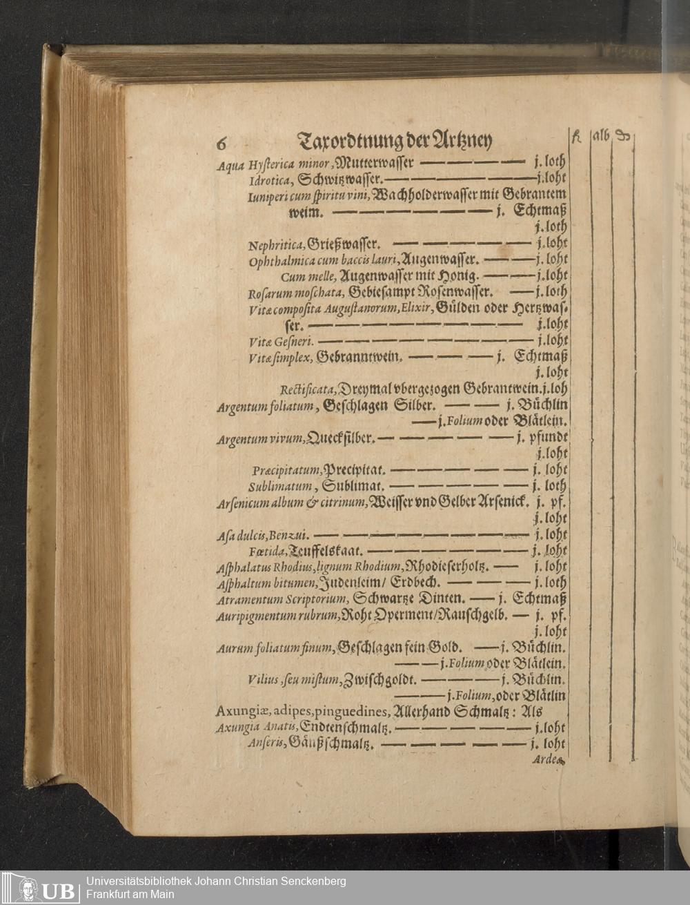 Reformation Oder Ernewerte Ordnung der Statt Franckfurt am Mayn, die Pflege der Gesundtheit betreffendt : Welche den Medicis, Apotheckern vnd andern angehörigen daselbsten, Auch sonsten jedermänniglichen zur Nachrichtung gegeben worden ; Beneben dem Tax vnd Werth der Artzneyen, welche in den Apothecken allda zufinden