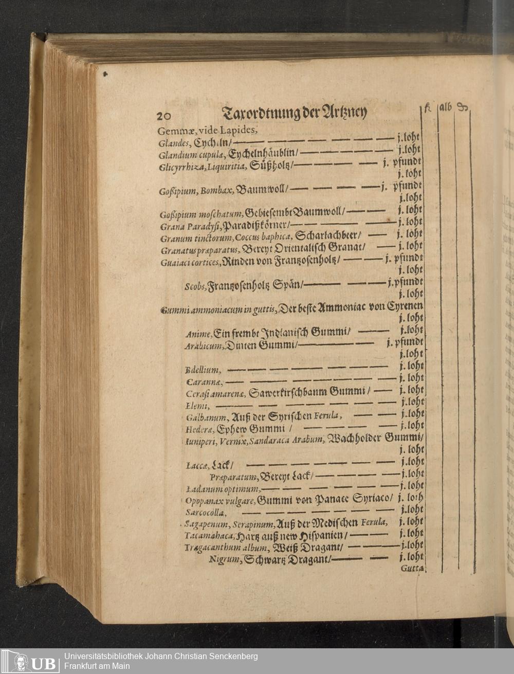 Reformation Oder Ernewerte Ordnung der Statt Franckfurt am Mayn, die Pflege der Gesundtheit betreffendt : Welche den Medicis, Apotheckern vnd andern angehörigen daselbsten, Auch sonsten jedermänniglichen zur Nachrichtung gegeben worden ; Beneben dem Tax vnd Werth der Artzneyen, welche in den Apothecken allda zufinden