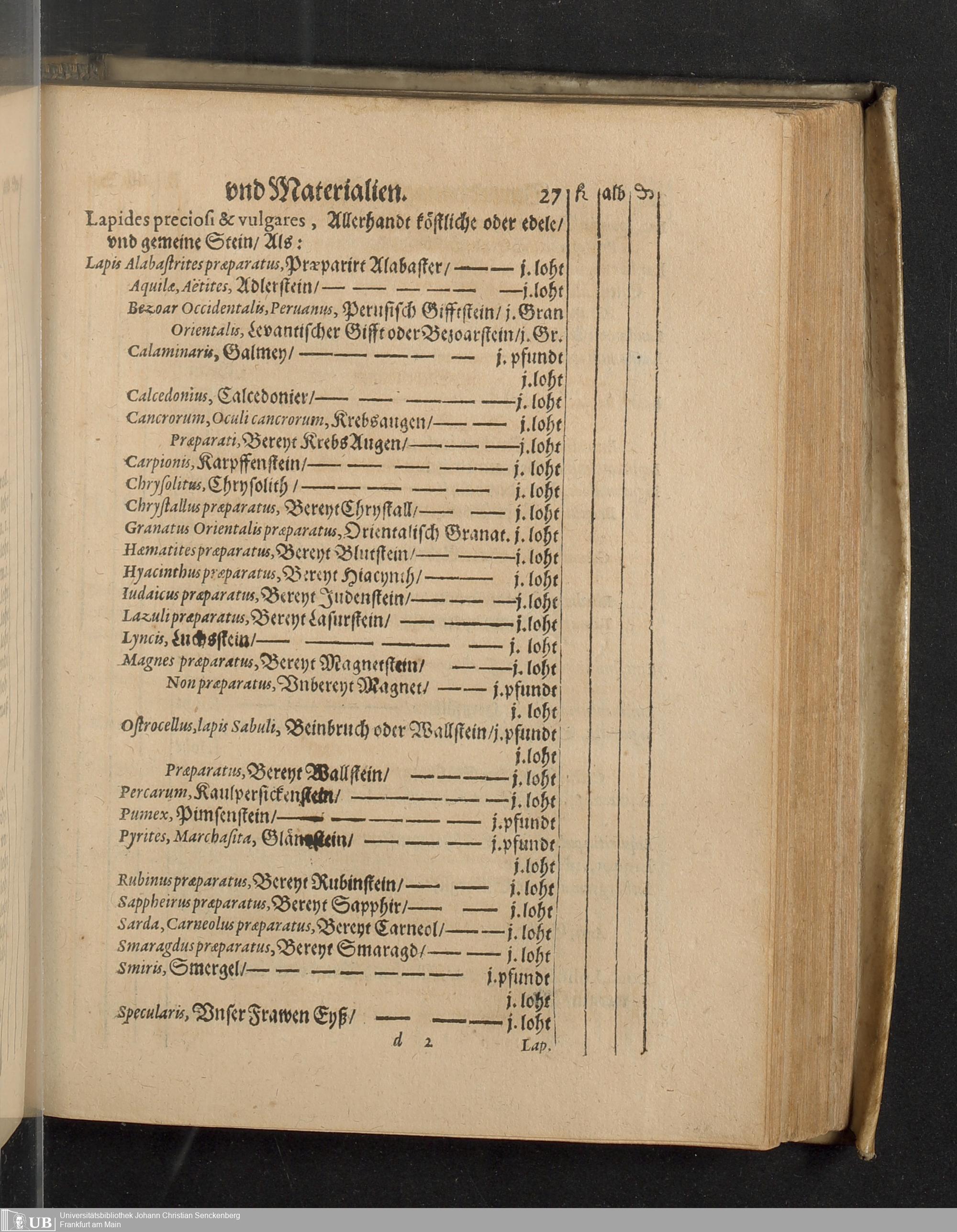 Reformation Oder Ernewerte Ordnung der Statt Franckfurt am Mayn, die Pflege der Gesundtheit betreffendt : Welche den Medicis, Apotheckern vnd andern angehörigen daselbsten, Auch sonsten jedermänniglichen zur Nachrichtung gegeben worden ; Beneben dem Tax vnd Werth der Artzneyen, welche in den Apothecken allda zufinden