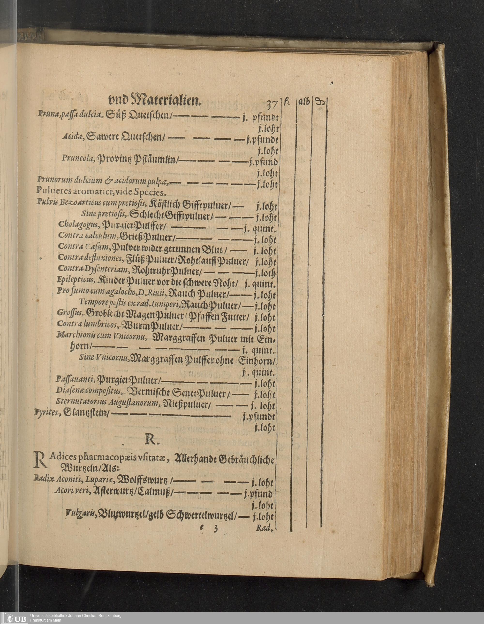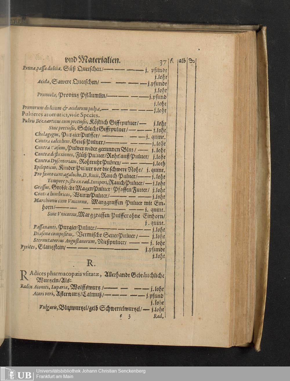 Reformation Oder Ernewerte Ordnung der Statt Franckfurt am Mayn, die Pflege der Gesundtheit betreffendt : Welche den Medicis, Apotheckern vnd andern angehörigen daselbsten, Auch sonsten jedermänniglichen zur Nachrichtung gegeben worden ; Beneben dem Tax vnd Werth der Artzneyen, welche in den Apothecken allda zufinden