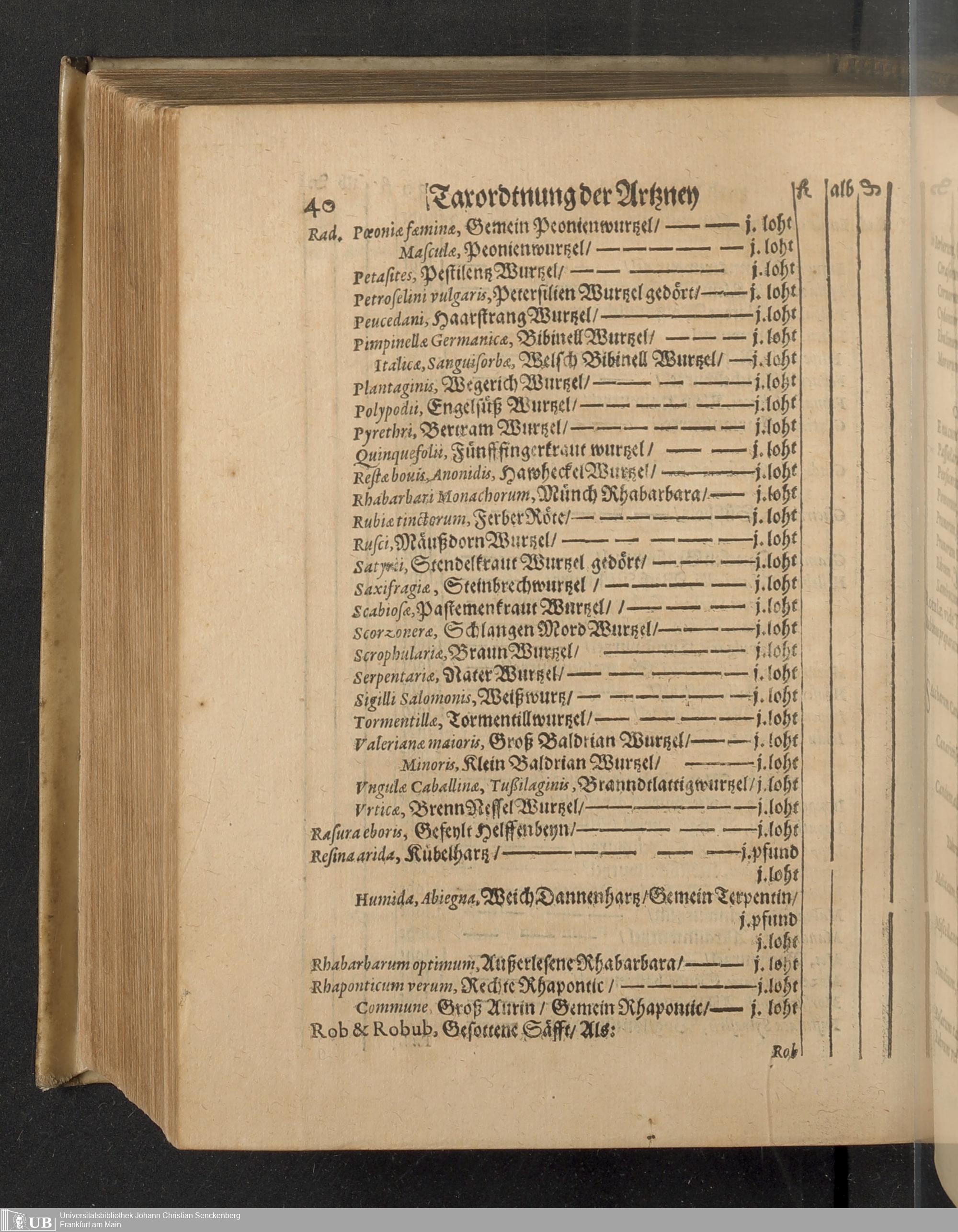 Reformation Oder Ernewerte Ordnung der Statt Franckfurt am Mayn, die Pflege der Gesundtheit betreffendt : Welche den Medicis, Apotheckern vnd andern angehörigen daselbsten, Auch sonsten jedermänniglichen zur Nachrichtung gegeben worden ; Beneben dem Tax vnd Werth der Artzneyen, welche in den Apothecken allda zufinden