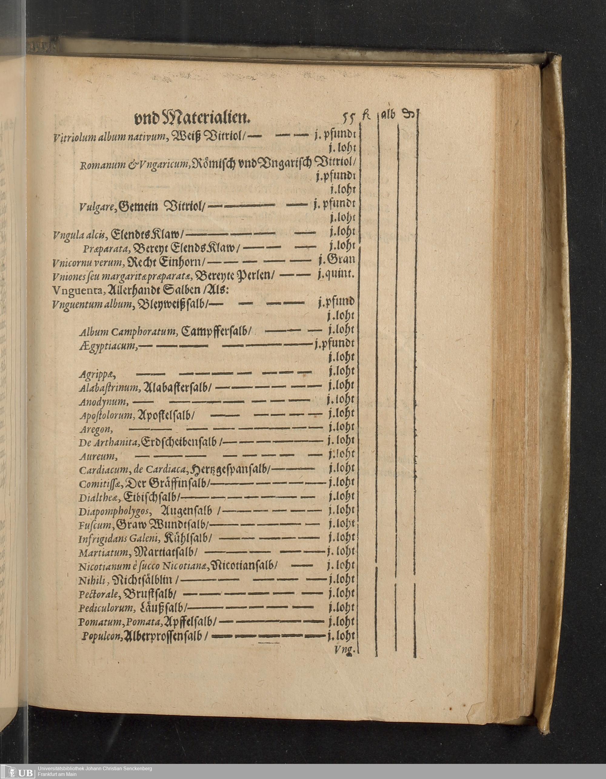 Reformation Oder Ernewerte Ordnung der Statt Franckfurt am Mayn, die Pflege der Gesundtheit betreffendt : Welche den Medicis, Apotheckern vnd andern angehörigen daselbsten, Auch sonsten jedermänniglichen zur Nachrichtung gegeben worden ; Beneben dem Tax vnd Werth der Artzneyen, welche in den Apothecken allda zufinden