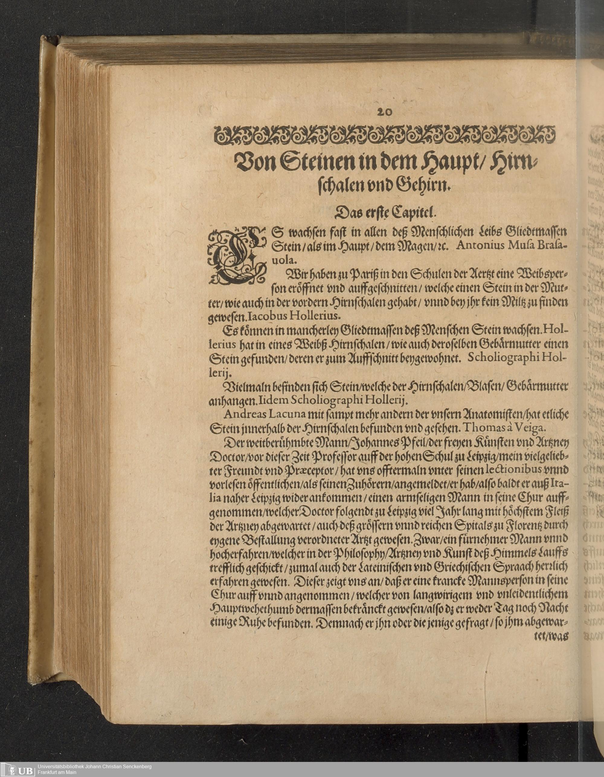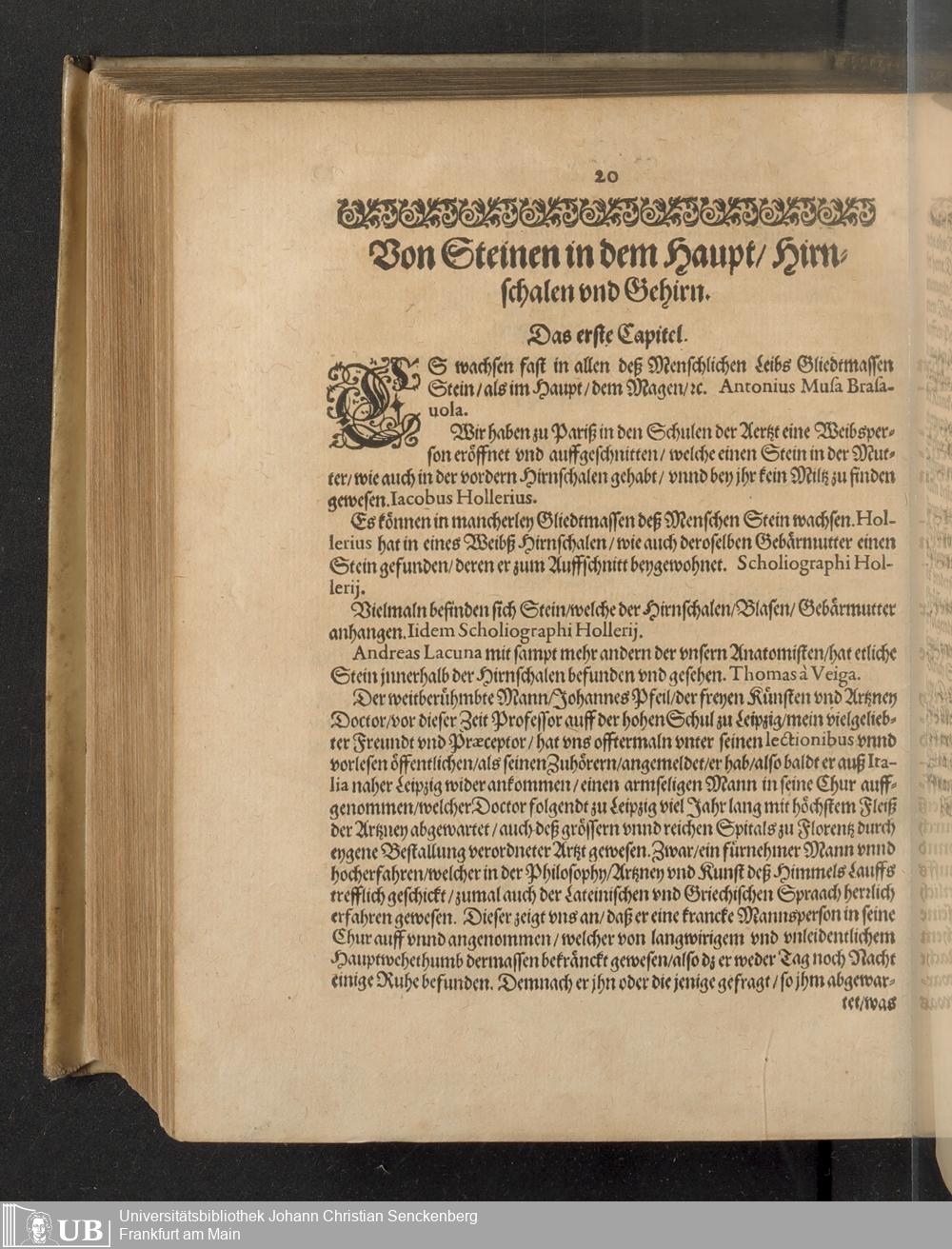 Lithogenesia oder Wunderstein: Von wunderbarem Steingewächs oder Steingeburt in der kleinen Welt, das ist in dem Menschlichen Leib: in dem entweder die Glieder selbst und Corpus zu Stein unnd Felsen worden, oder durch alle unnd jede Leibsglidmassen und Gefäss, nicht minder als in den Ertzgruben der grossen Welt, Stein unnd Mineralia erwachsen : darinnen durch ein kurtzen Theorischen verfasten Discurs die Ursach dero Coagulation im Saltzgeist uffgesucht und eröffnet / anfangs in Latein publiciert und zusammen getragen durch Den Hochgelärten, Joannem Georgium Schenckium a Grafenberg, Medicum, ... ; An itzo aber ... durch einen Liebhaber der Medicin in die Teutsche Zung und Spraach ubersetzt