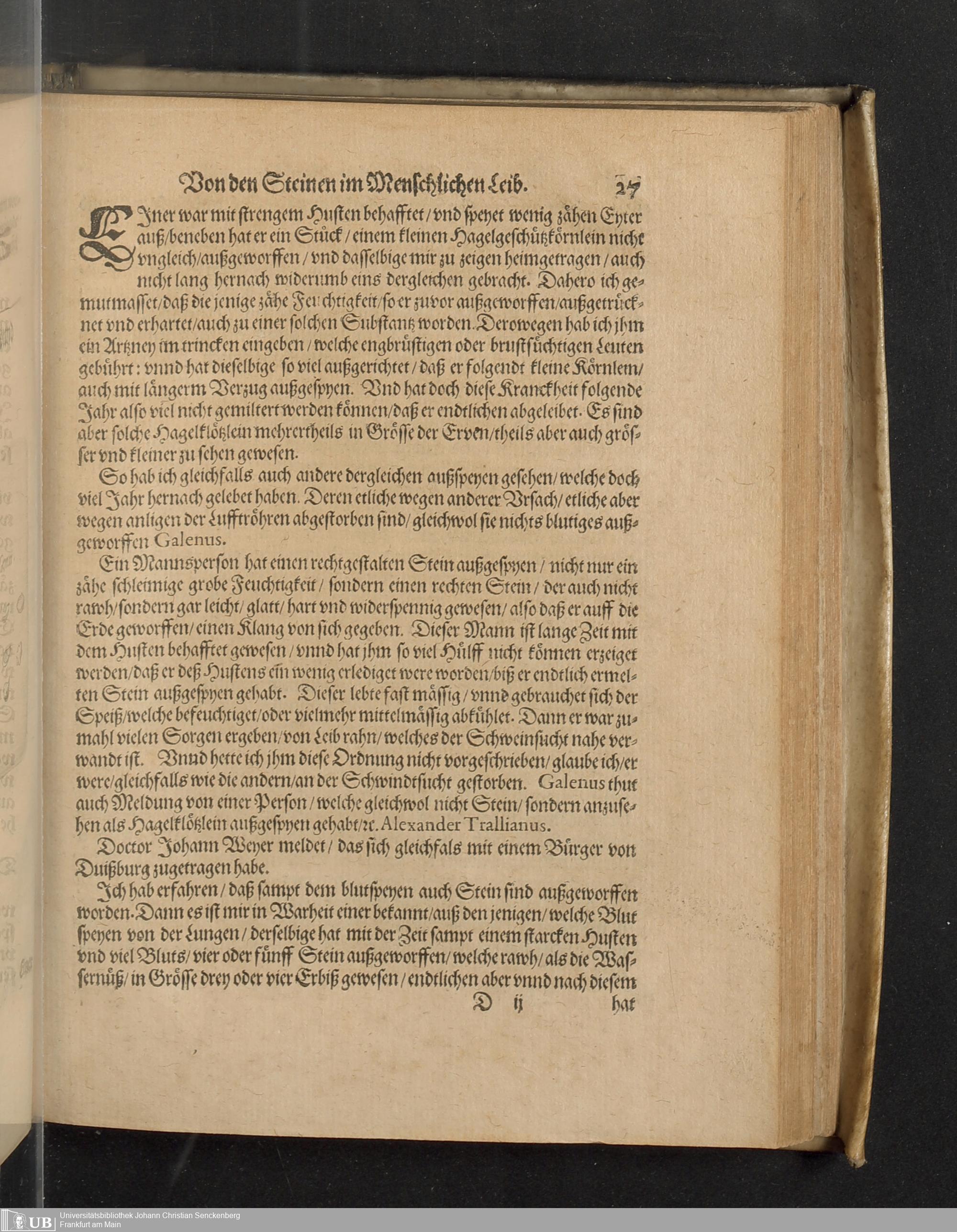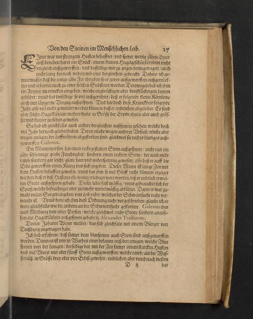 Lithogenesia oder Wunderstein: Von wunderbarem Steingewächs oder Steingeburt in der kleinen Welt, das ist in dem Menschlichen Leib: in dem entweder die Glieder selbst und Corpus zu Stein unnd Felsen worden, oder durch alle unnd jede Leibsglidmassen und Gefäss, nicht minder als in den Ertzgruben der grossen Welt, Stein unnd Mineralia erwachsen : darinnen durch ein kurtzen Theorischen verfasten Discurs die Ursach dero Coagulation im Saltzgeist uffgesucht und eröffnet / anfangs in Latein publiciert und zusammen getragen durch Den Hochgelärten, Joannem Georgium Schenckium a Grafenberg, Medicum, ... ; An itzo aber ... durch einen Liebhaber der Medicin in die Teutsche Zung und Spraach ubersetzt