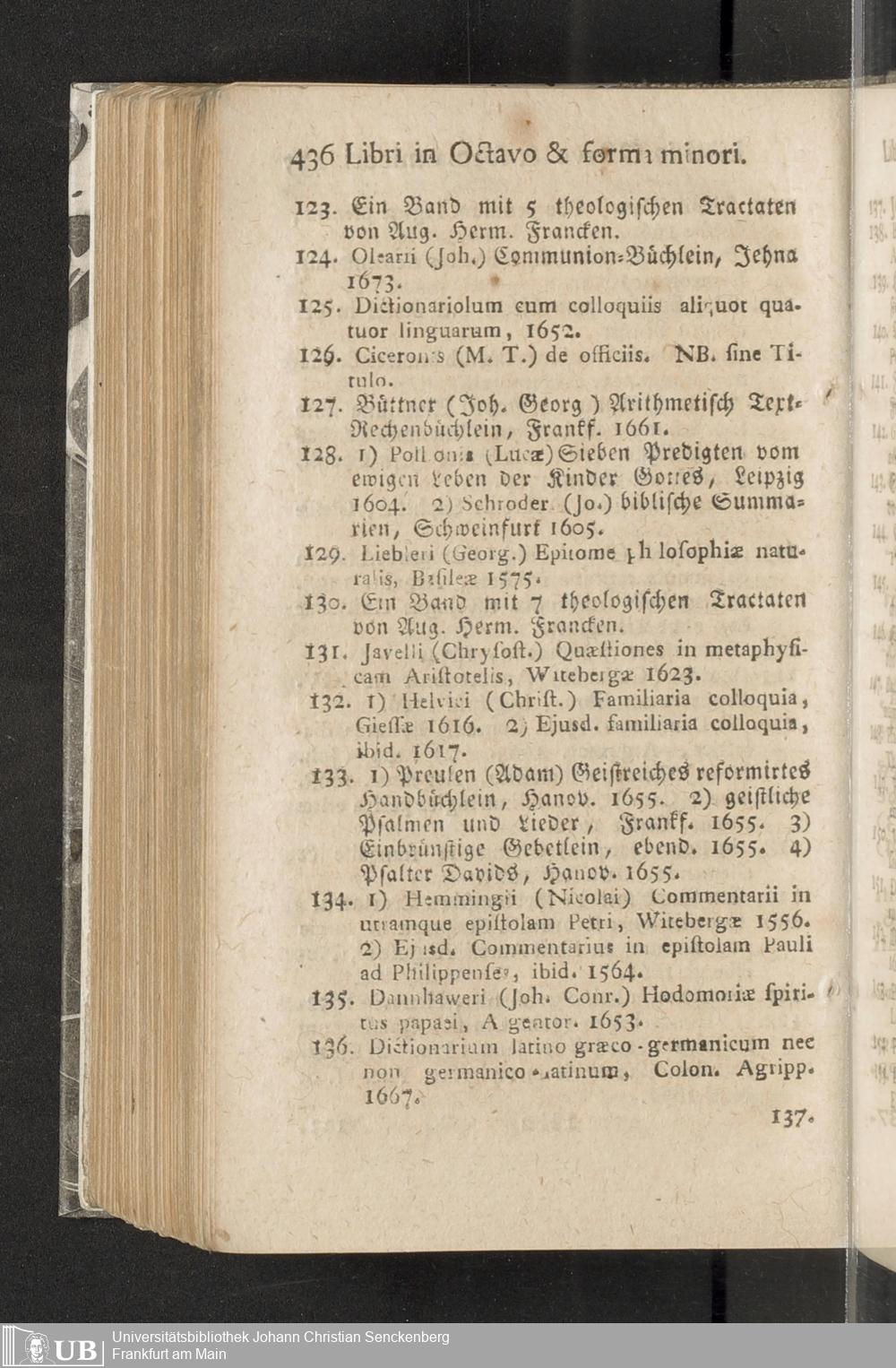 Verzeichniß einer in alle Theile der Gelehrsamkeit einschlagenden Büchersammlung, welche zu Frankfurt am Mayn in dem D. Senckenbergischen Stifts-Hauß auf der grossen Eschenheimergaße den 2ten May und folgende Tage 1785. durch die geschwornen Ausrüfer versteigert werden soll