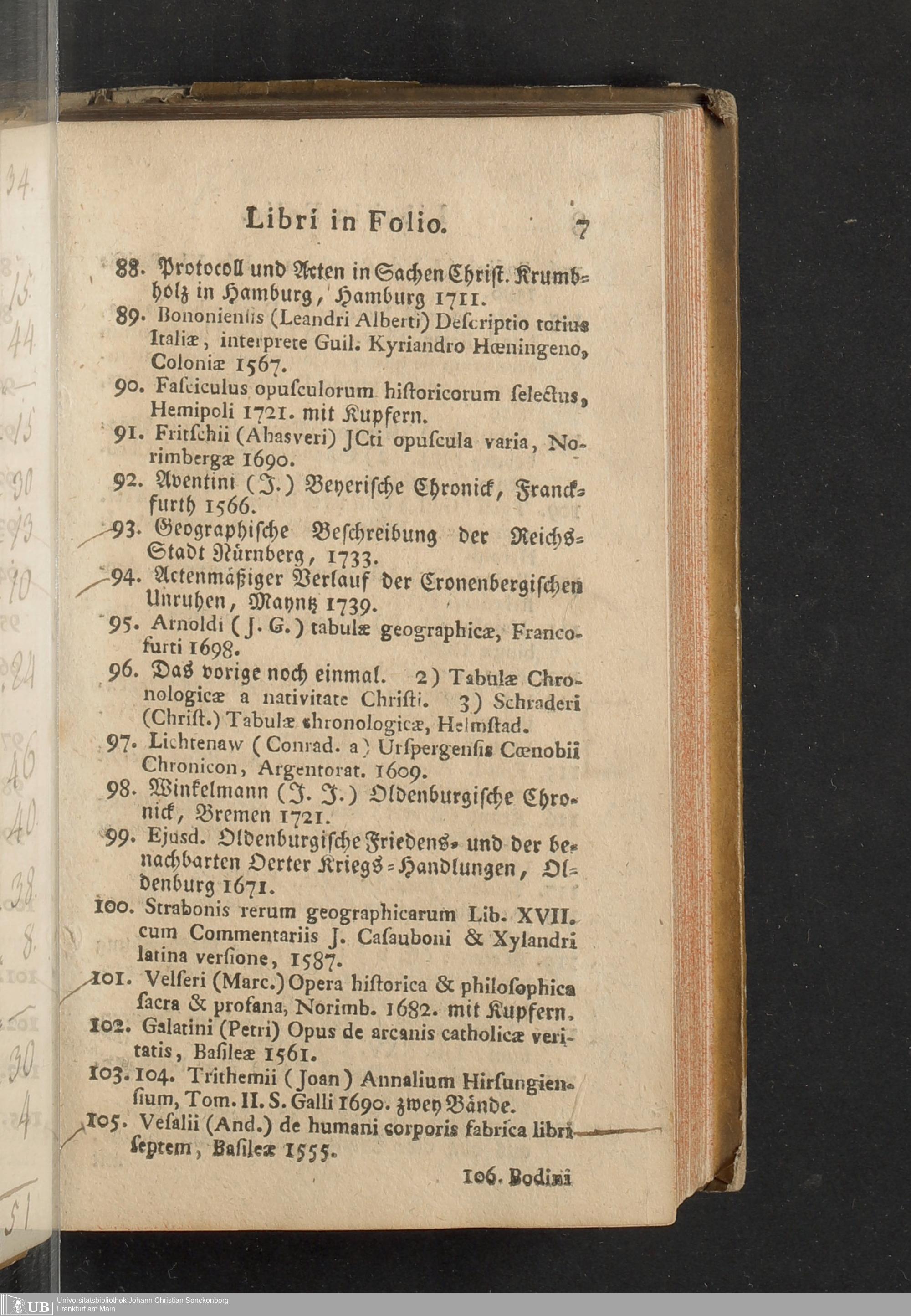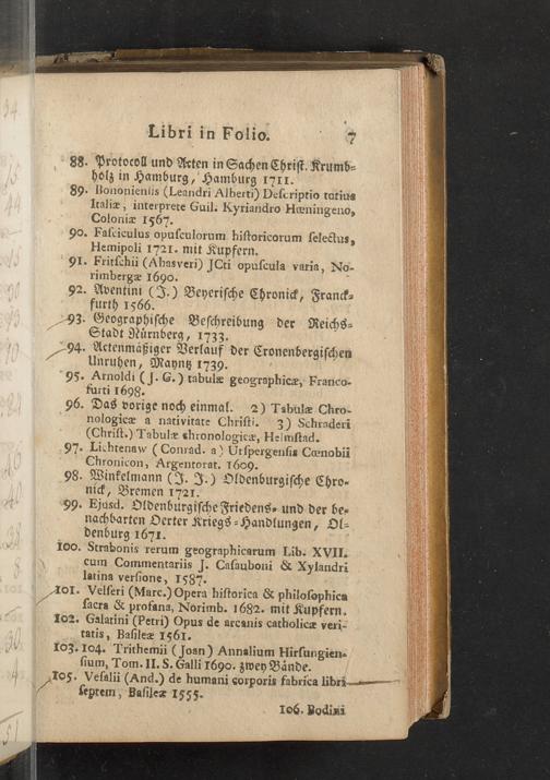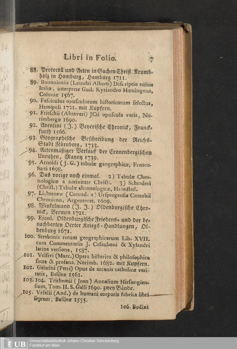 Verzeichniß einer in alle Theile der Gelehrsamkeit einschlagenden Büchersammlung, welche zu Frankfurt am Mayn in dem D. Senckenbergischen Stifts-Hauß auf der grossen Eschenheimergaße den 2ten May und folgende Tage 1785. durch die geschwornen Ausrüfer versteigert werden soll