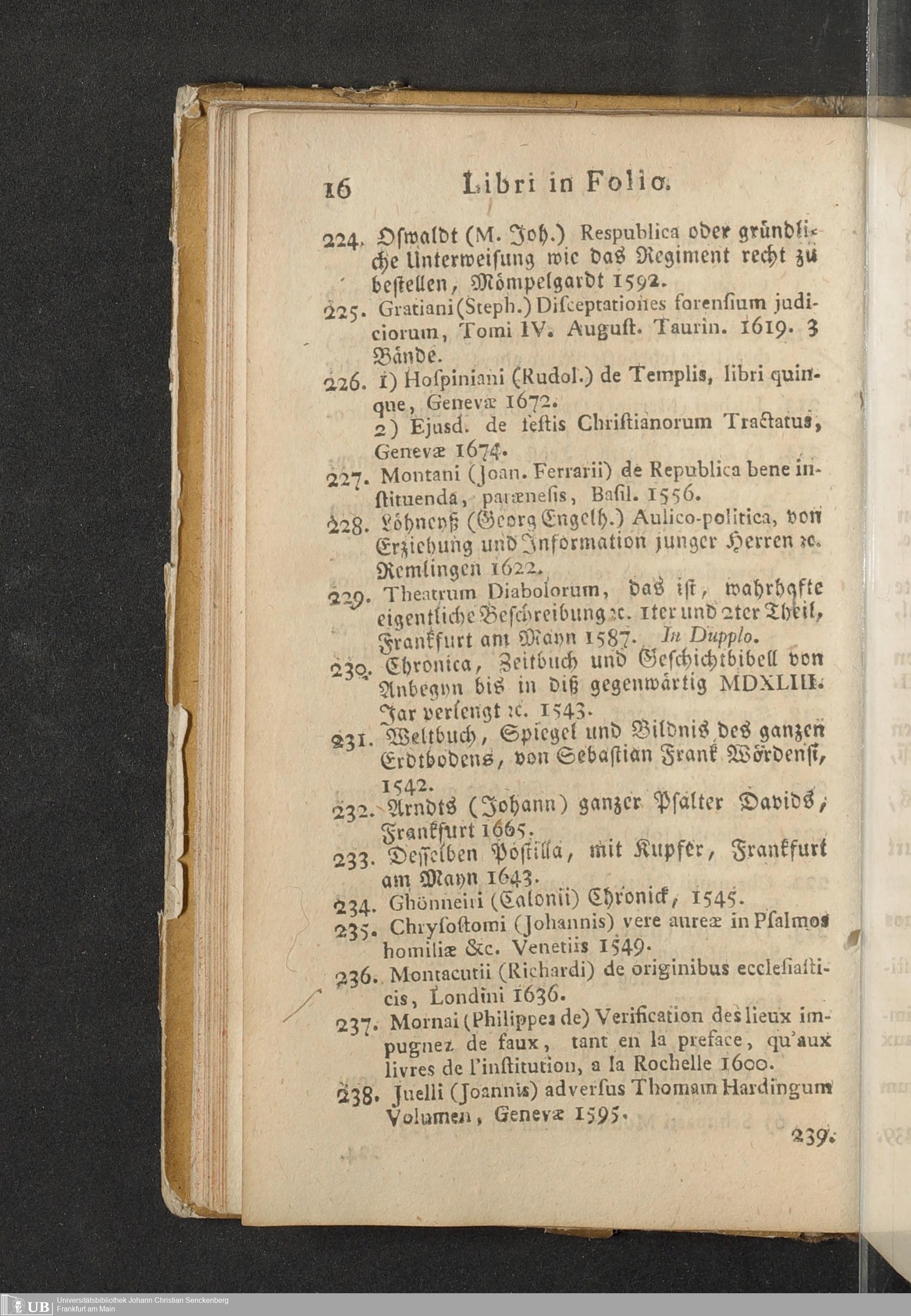 Verzeichniß einer in alle Theile der Gelehrsamkeit einschlagenden Büchersammlung, welche zu Frankfurt am Mayn in dem D. Senckenbergischen Stifts-Hauß auf der grossen Eschenheimergaße den 2ten May und folgende Tage 1785. durch die geschwornen Ausrüfer versteigert werden soll