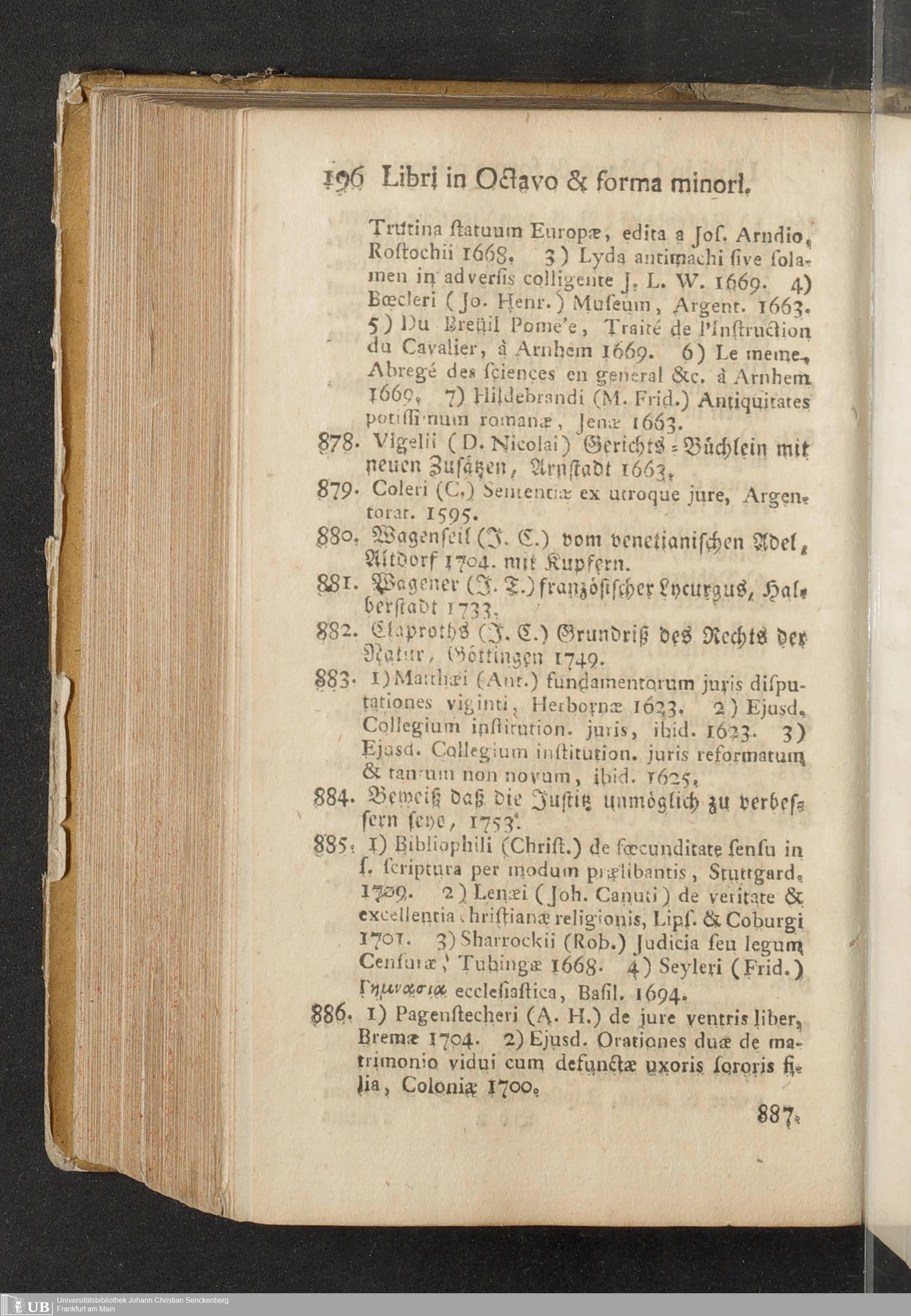 Verzeichniß einer in alle Theile der Gelehrsamkeit einschlagenden Büchersammlung, welche zu Frankfurt am Mayn in dem D. Senckenbergischen Stifts-Hauß auf der grossen Eschenheimergaße den 2ten May und folgende Tage 1785. durch die geschwornen Ausrüfer versteigert werden soll