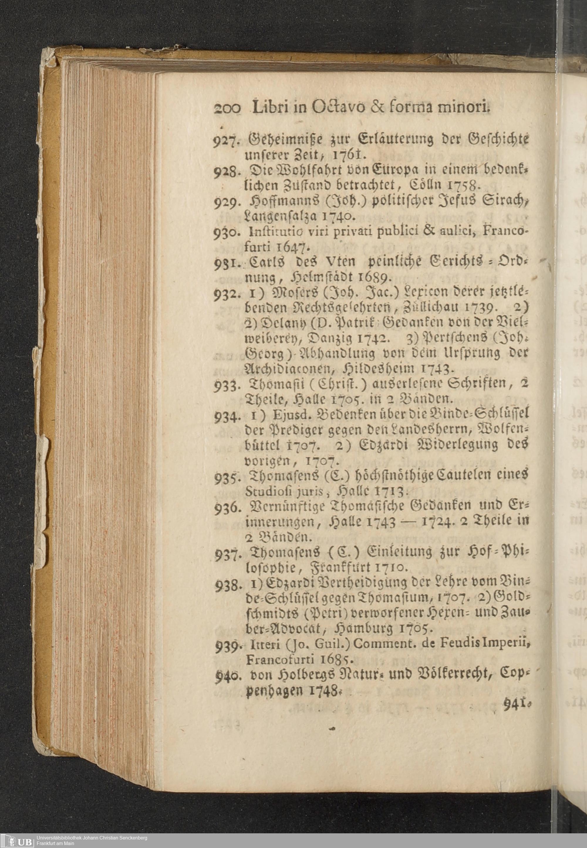 Verzeichniß einer in alle Theile der Gelehrsamkeit einschlagenden Büchersammlung, welche zu Frankfurt am Mayn in dem D. Senckenbergischen Stifts-Hauß auf der grossen Eschenheimergaße den 2ten May und folgende Tage 1785. durch die geschwornen Ausrüfer versteigert werden soll