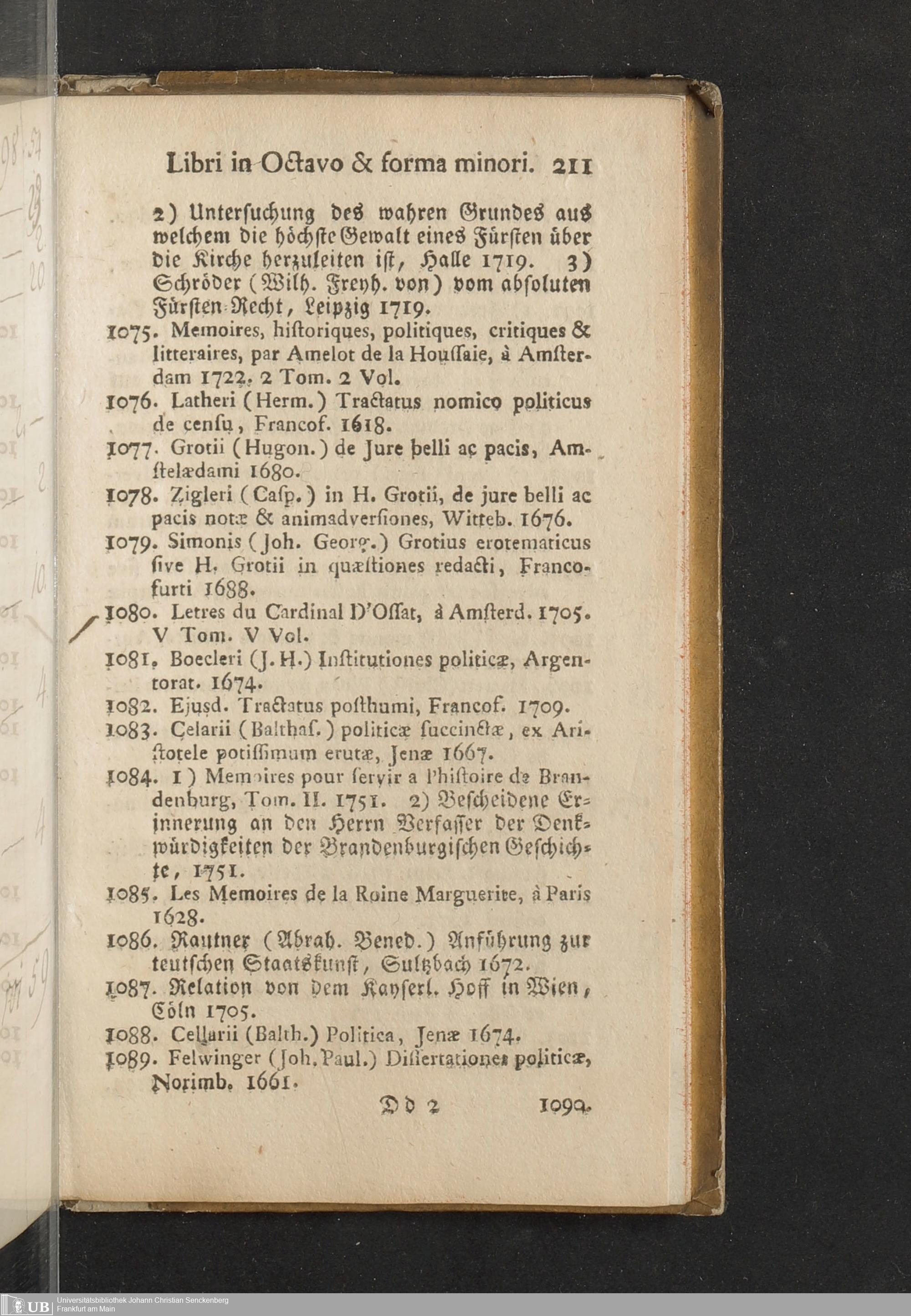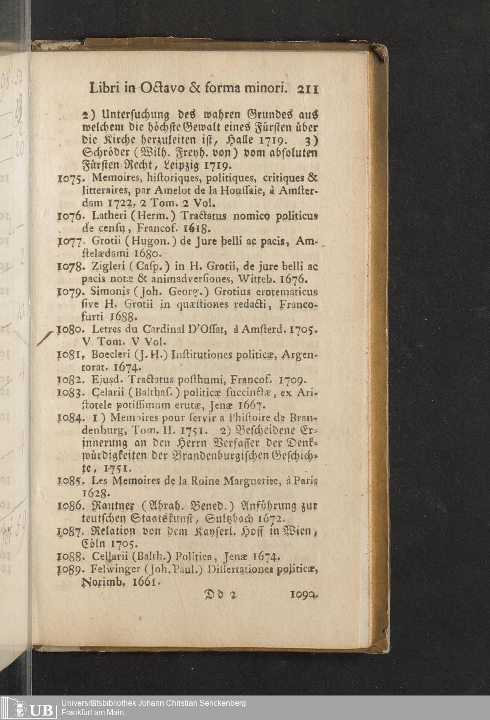 Verzeichniß einer in alle Theile der Gelehrsamkeit einschlagenden Büchersammlung, welche zu Frankfurt am Mayn in dem D. Senckenbergischen Stifts-Hauß auf der grossen Eschenheimergaße den 2ten May und folgende Tage 1785. durch die geschwornen Ausrüfer versteigert werden soll
